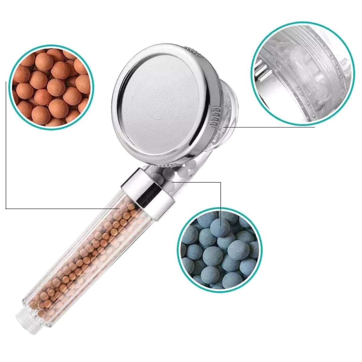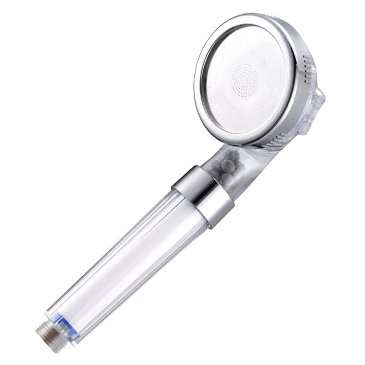 Cap de duș cromat cu funcție de ionizare. Echipat cu 3 moduri de jet (pluie, dus si masaj). Proiectat pentru instalare într-un furtun de duș standard. Filtrul încorporat, înlocuibil, mărește calitatea apei și elimină unele impurități.