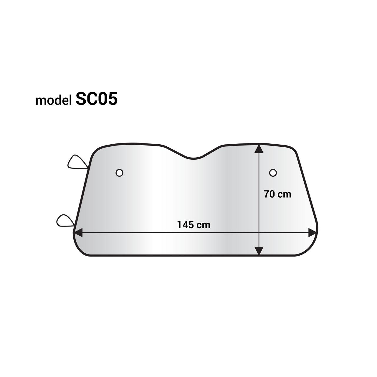 Reflecta razele soarelui facand temperatura din masina sa fie suportabila in zilele toride de vara. Fixarea se face cu ventuze.