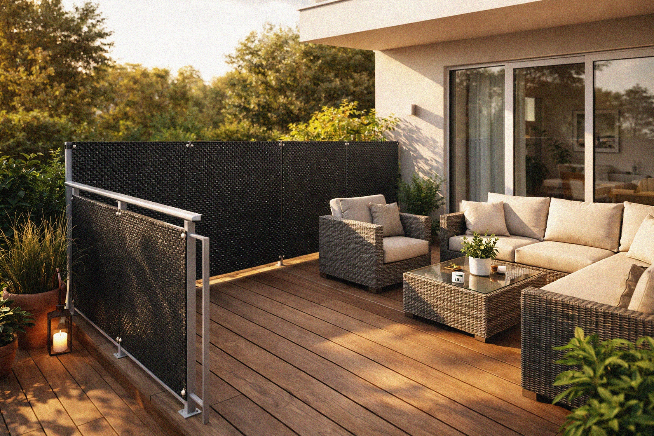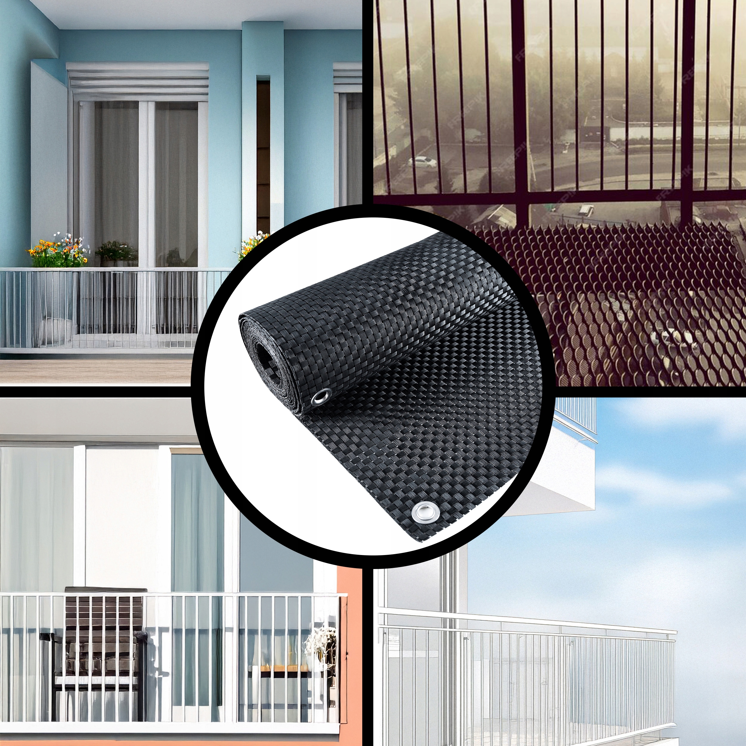 Utilizare: se fixeaza pe balustrada balconului, pe terasa sau pe gard, folosind ochiurile metalice si snurul inclus. Este ideal pentru delimitarea vizuala a spatiului si pentru cresterea confortului in zonele expuse la soare si vant.
