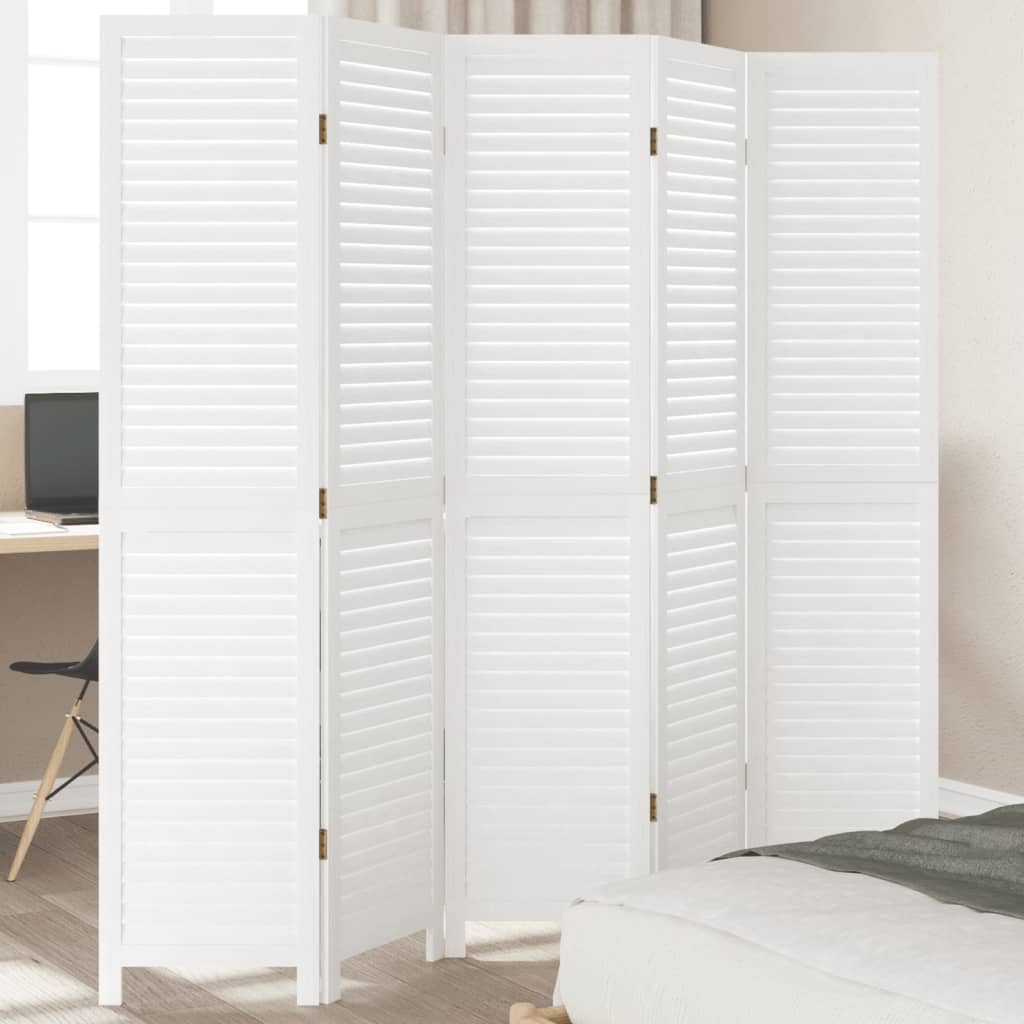 Paravan cameră 5 panouri, alb, lemn masiv paulownia GartenMobel Dekor