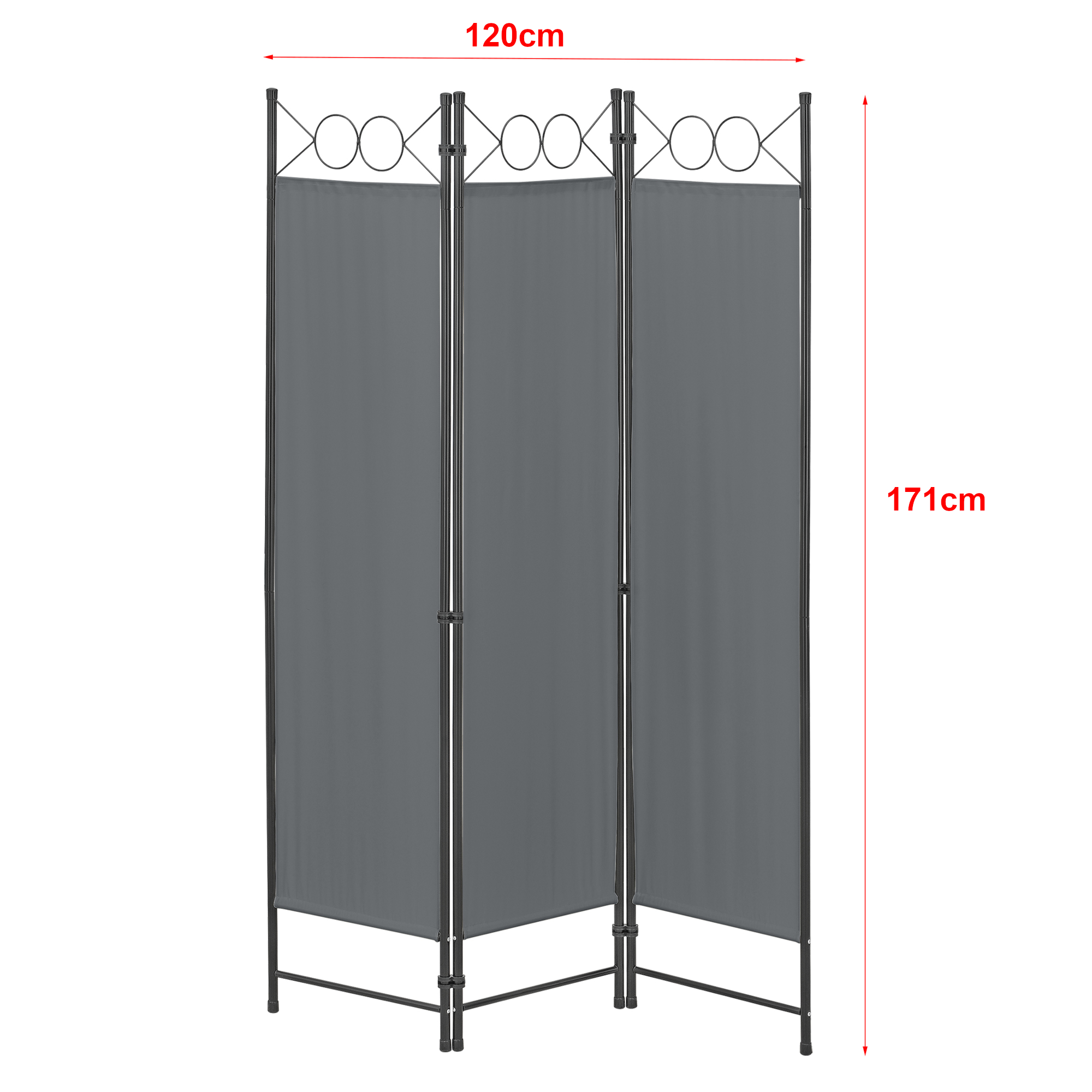 Paravan cameră pliabil Saragossa, 3 panouri, gri închis, 120x171 cm