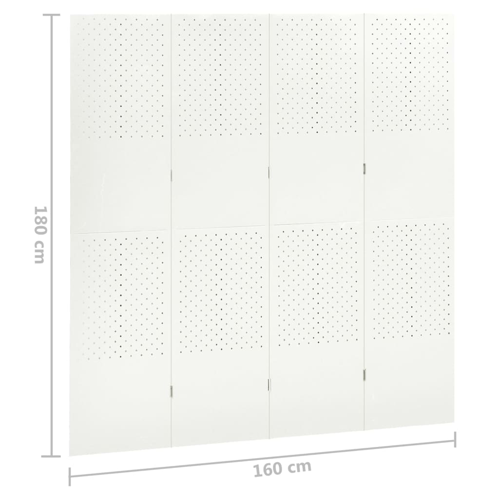 Paravan de cameră cu 4 panouri, alb, 160x180 cm, oțel GartenMobel Dekor