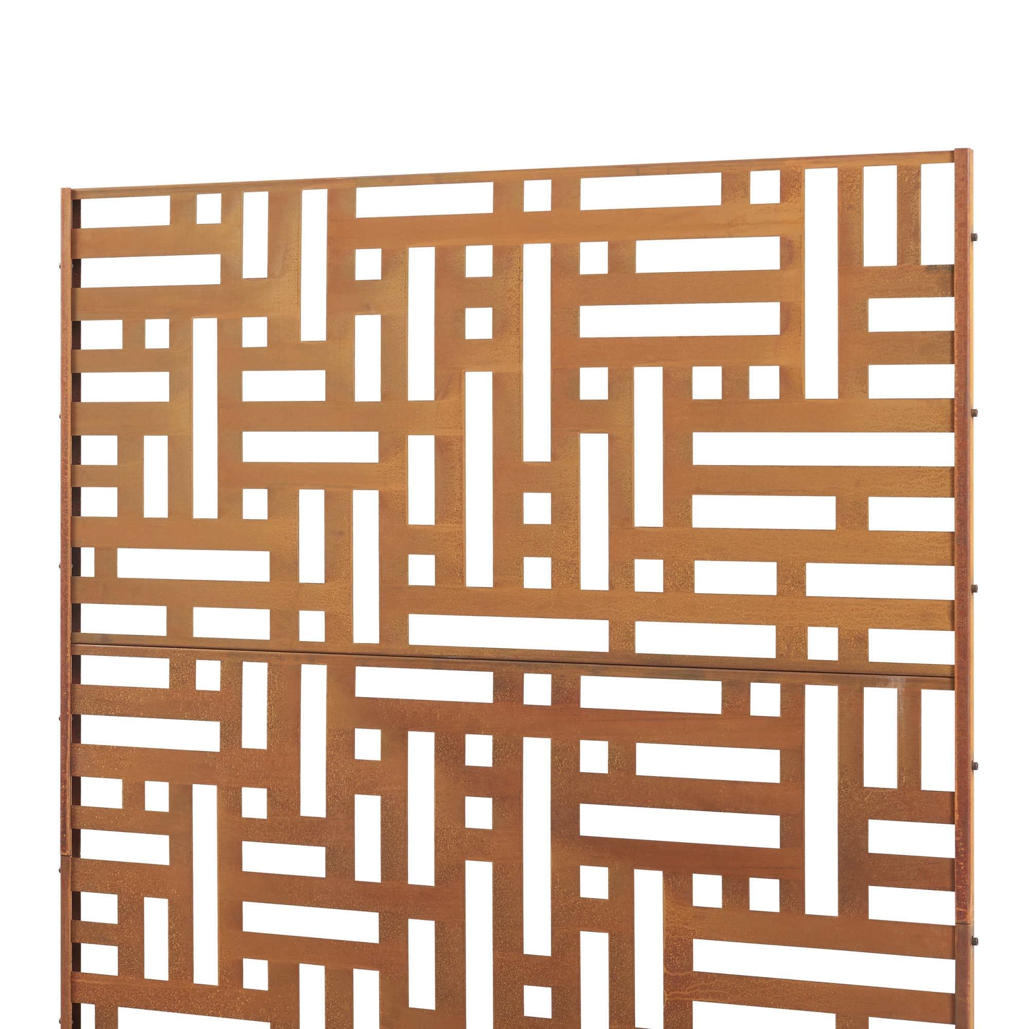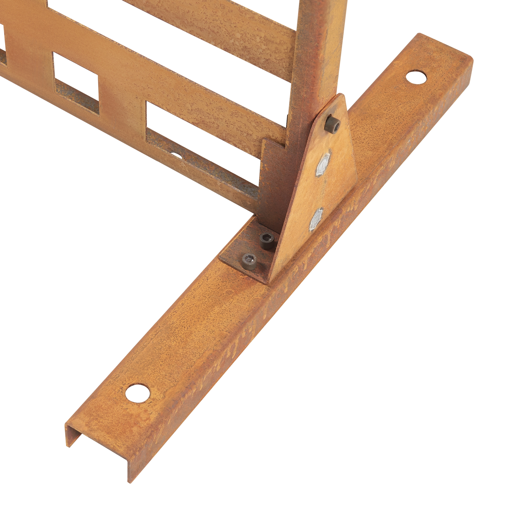 Realizat din oțel corten, paravanul dezvoltă în timp o patină specifică de rugină nobilă, apreciată pentru aspectul său autentic și elegant. Picioarele robuste asigură o poziționare stabilă, iar montajul se face rapid și ușor.
