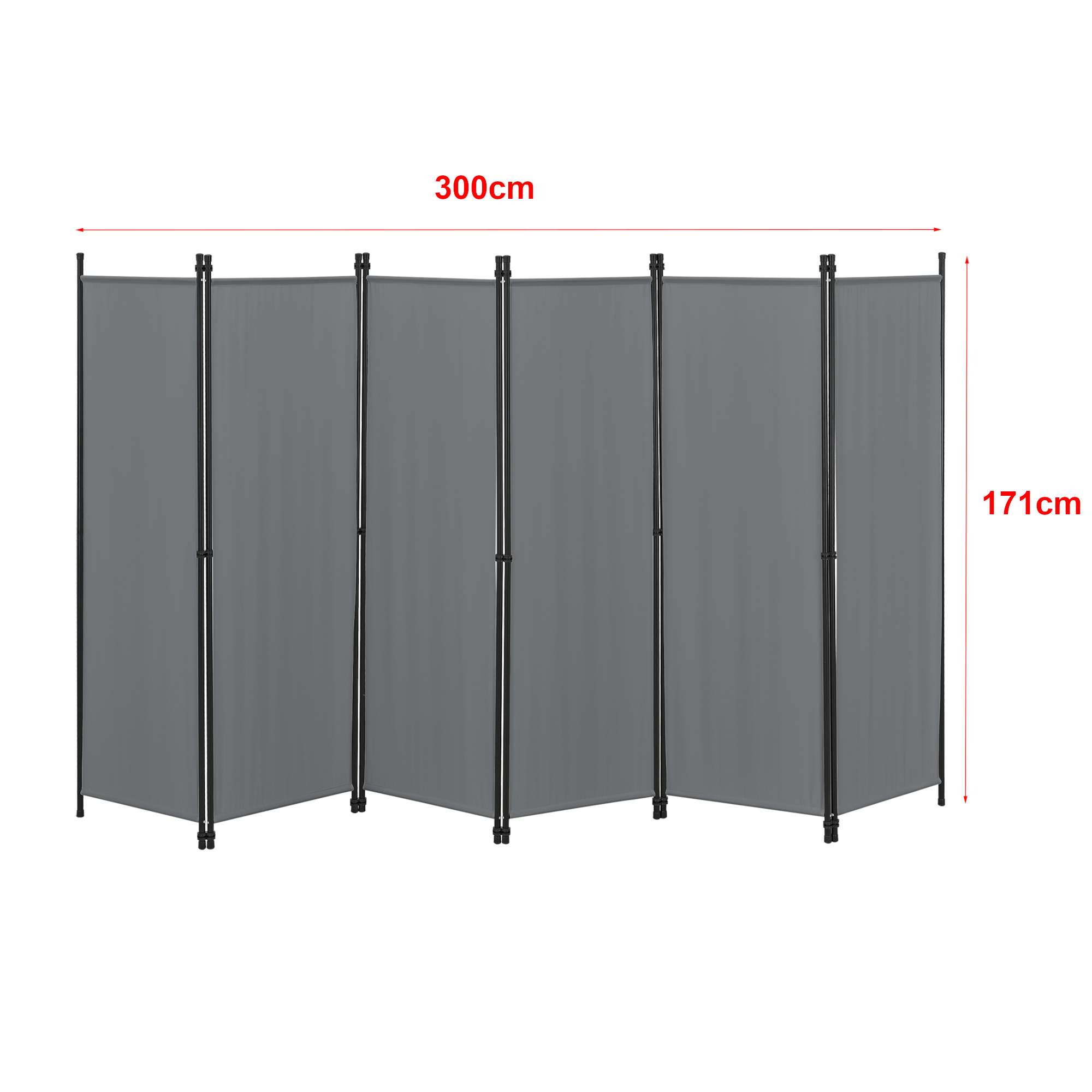 Paravan despărțitor Huesca cu 6 panouri, 300x171 cm, gri închis