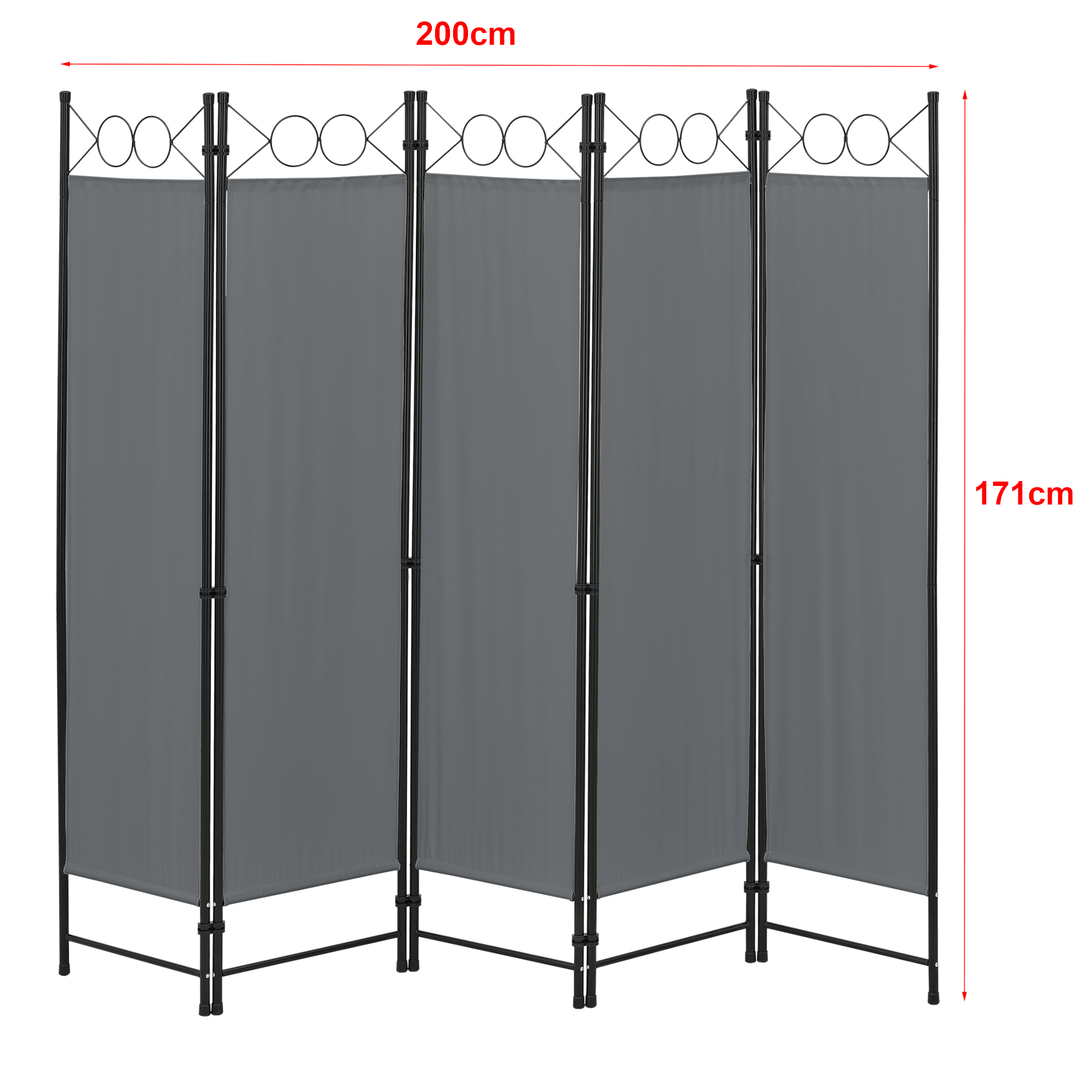 Paravan despărțitor pliabil Saragossa, 5 panouri, 200x171 cm, gri închis