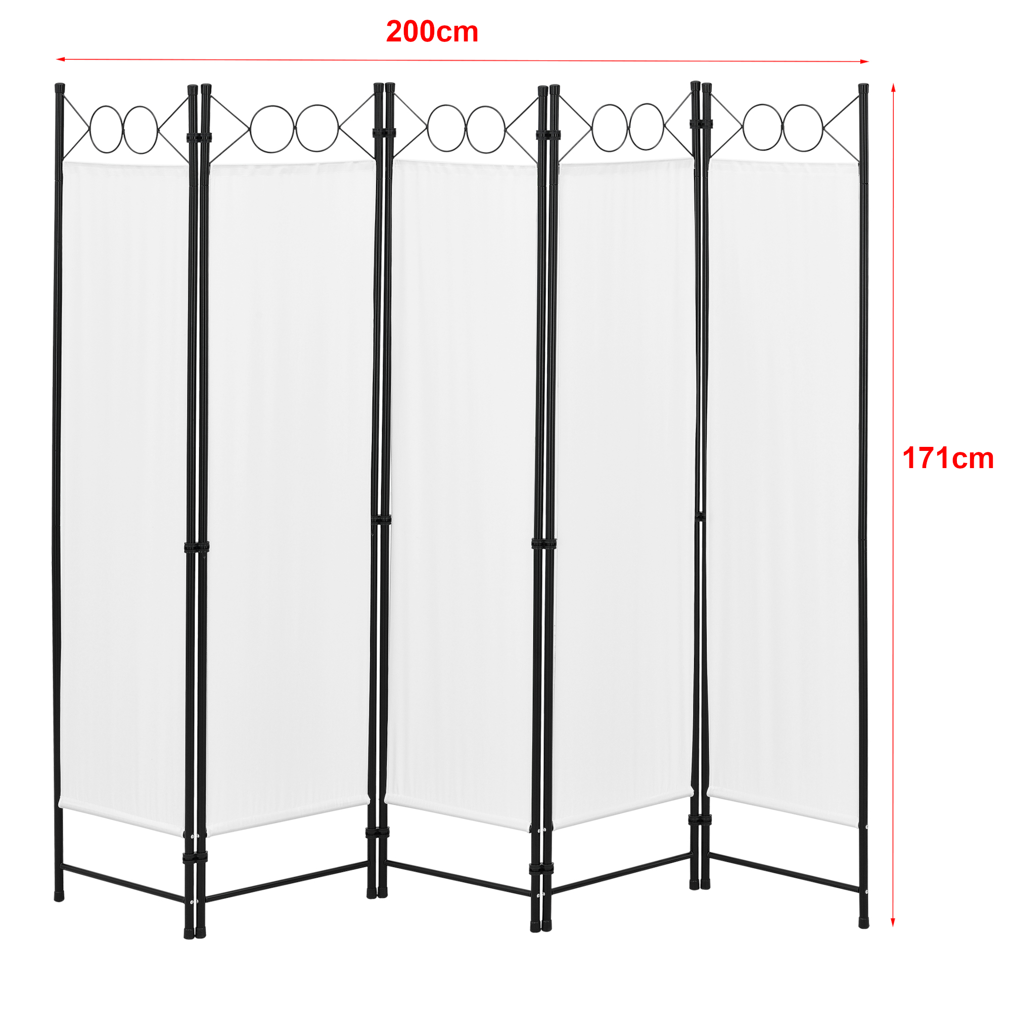 Paravan despărțitor pliabil Saragossa, 5 panouri, alb, 200x171 cm