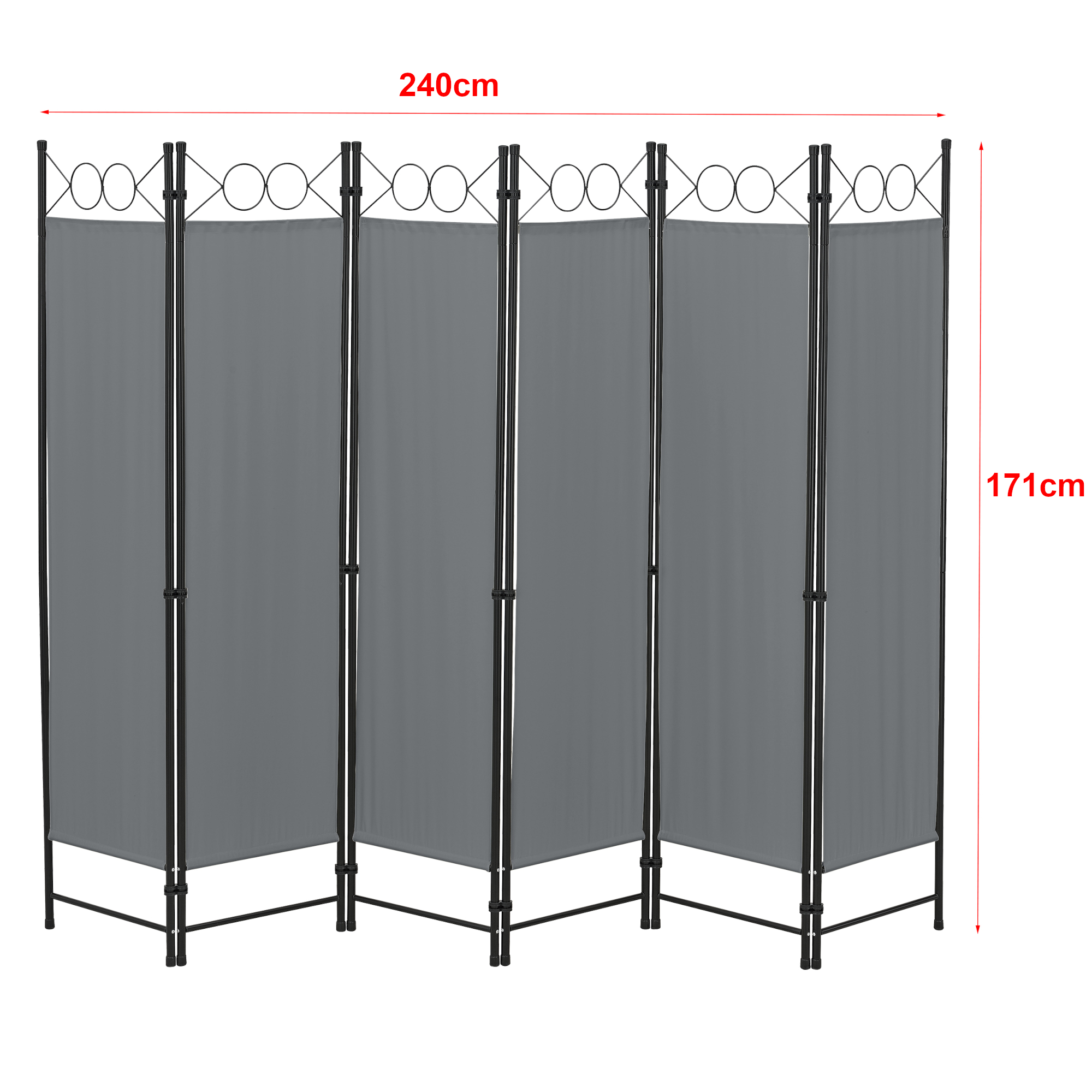Paravan despărțitor Saragossa cu 6 panouri, 240x171 cm, gri închis