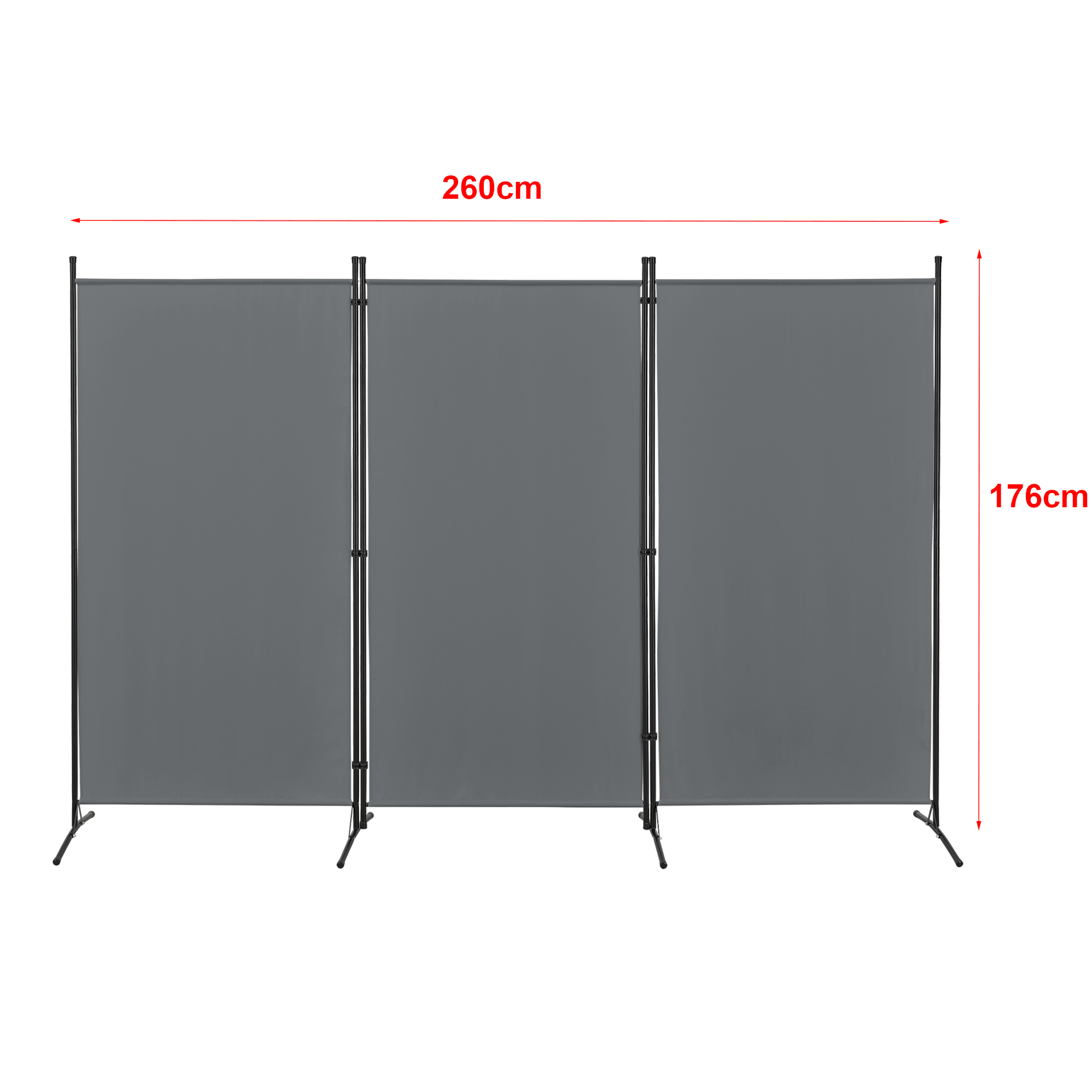Paravan despărțitor Teruel cu 3 panouri, 260x176 cm, gri închis