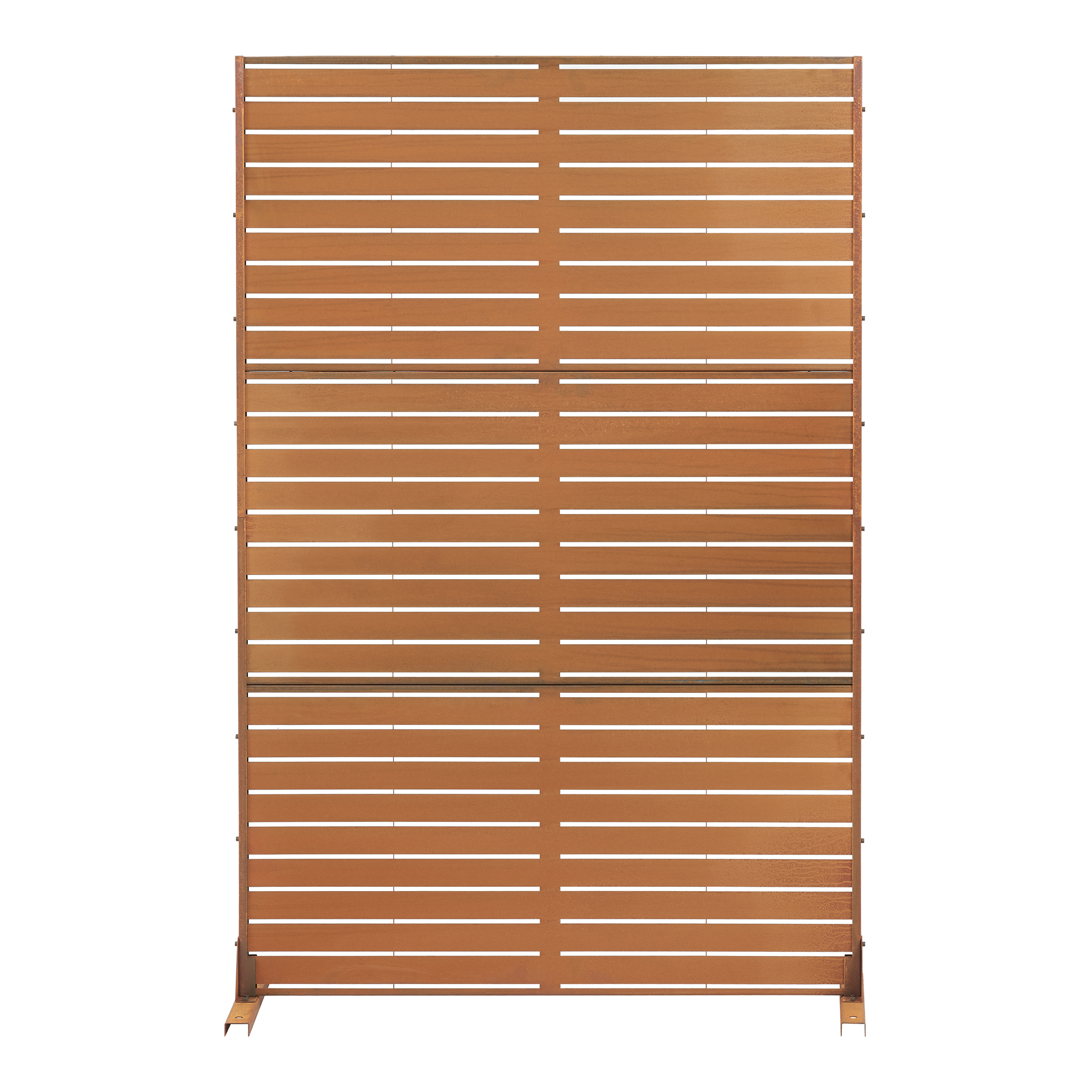 Designul modern, cu lamele orizontale și finisaj tip rugină decorativă, transformă acest paravan exterior într-un element vizual de efect. Fabricat din oțel Corten, produsul dezvoltă în timp o patină specifică, oferind un aspect autentic, industrial și rafinat.