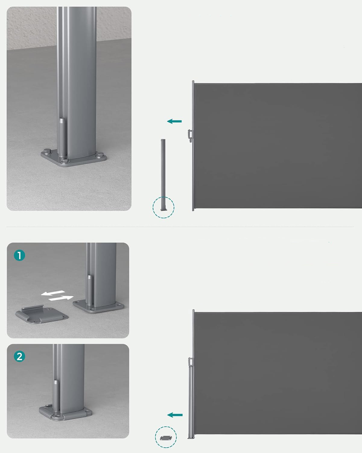 Paravanul este ideal pentru delimitarea unei zone de relaxare in aer liber. Se poate monta pe terasa, balcon, veranda sau in gradina, unde ofera protectie laterala si un aspect modern. Manerul este prevazut cu sistem de blocare, inclusiv siguranta pentru copii, pentru o utilizare mai sigura in familie.