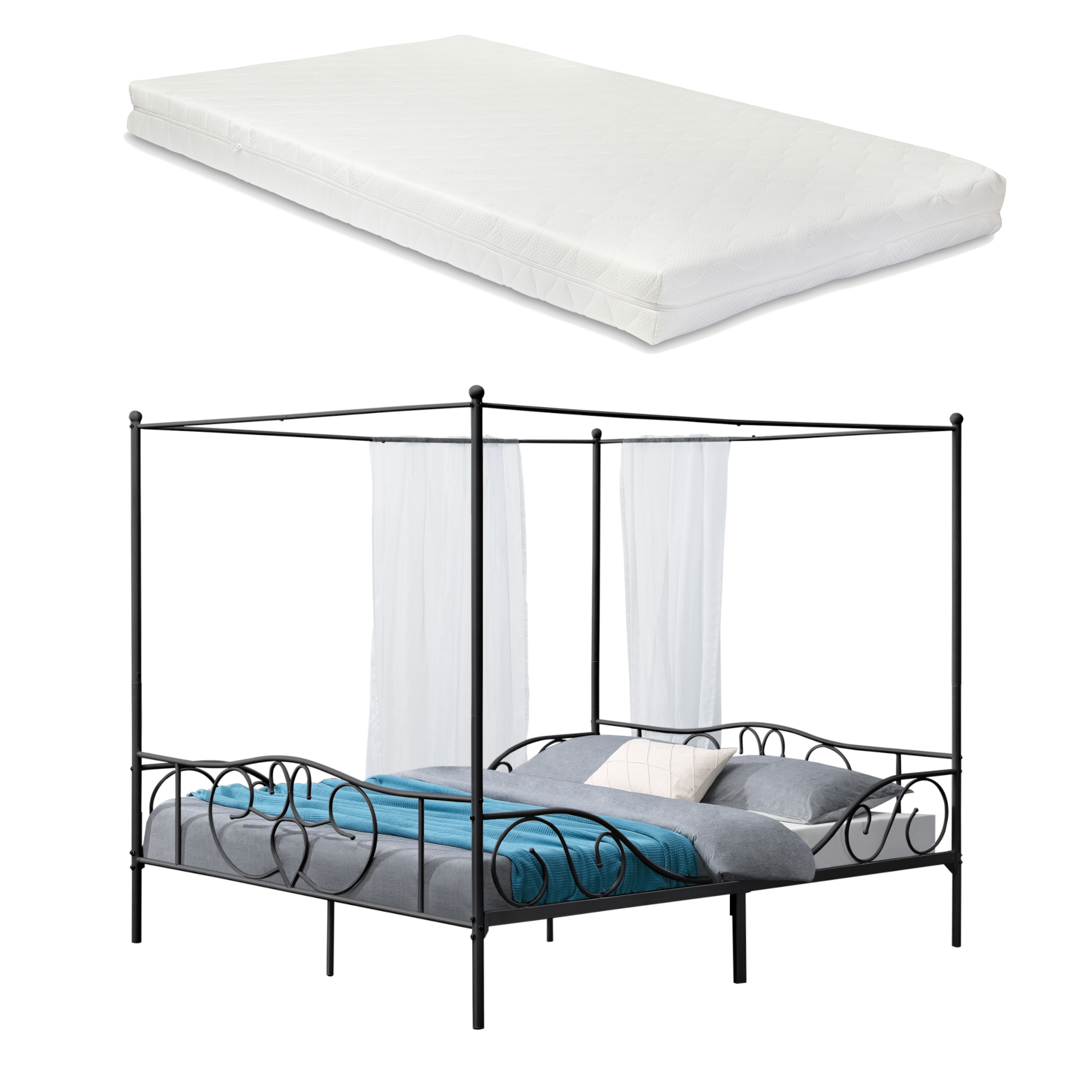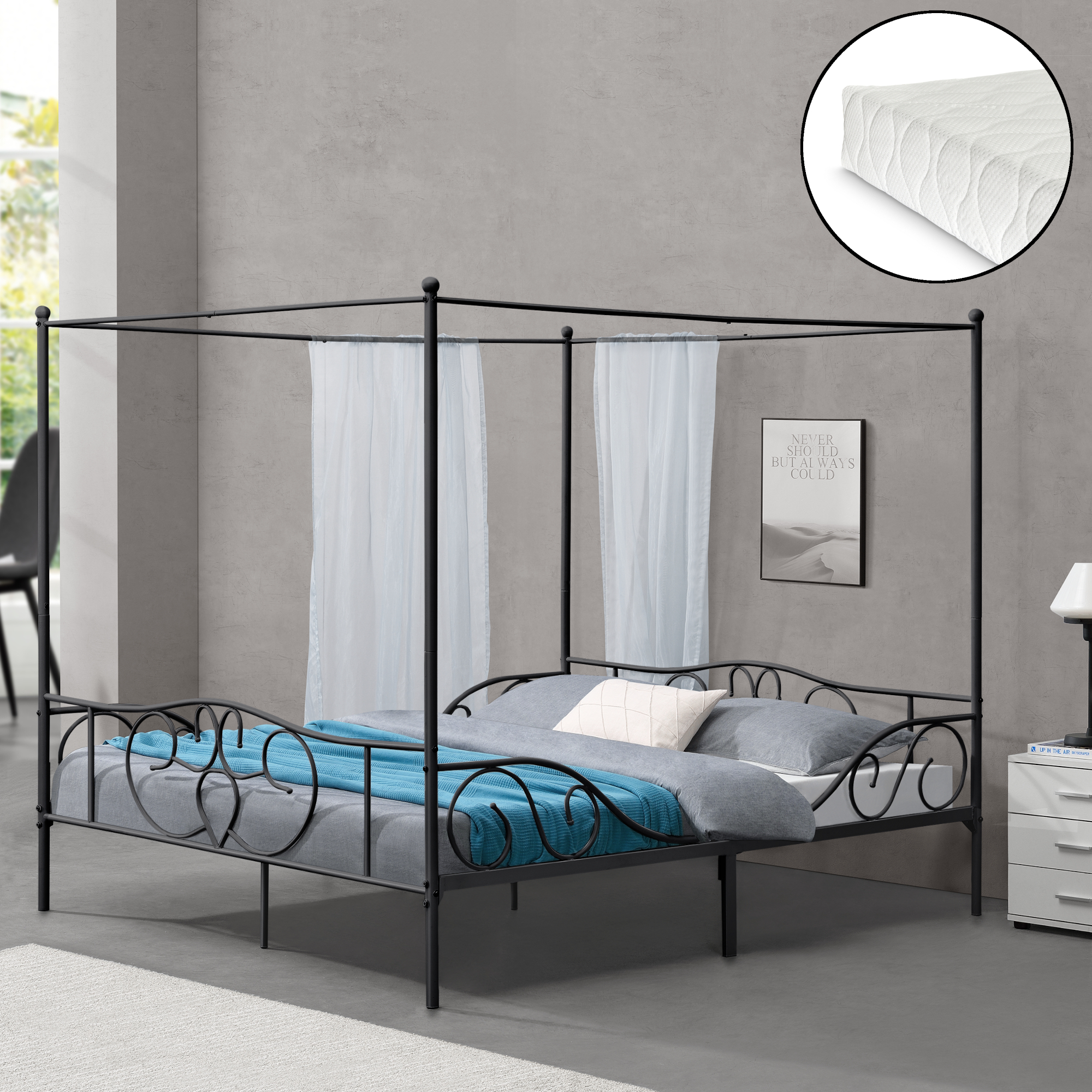In zilele noastre, nu trebuie sa te nasti printesa pentru a te trezi intr-un pat cu baldachin in fiecare dimineata. Acest pat metalic stabil si practic va fi cu siguranta bijuteria dormitorului dumneavoastra. Somnul bun, odihnitor este garantat de salteaua din spuma rece, care este hipoalergenica, permite circulatia aerului si este rezistenta la degradare. Datorita functiei care permite circulatia aerului vara mentine racoarea iar iarna caldura.