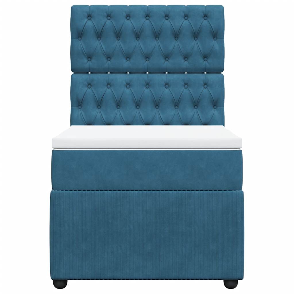 Pat box spring cu saltea, albastru, 100x200 cm, catifea GartenMobel Dekor