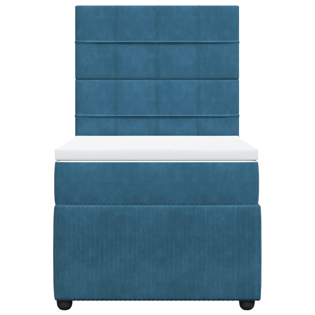 Pat box spring cu saltea, albastru, 90x190 cm, catifea GartenMobel Dekor