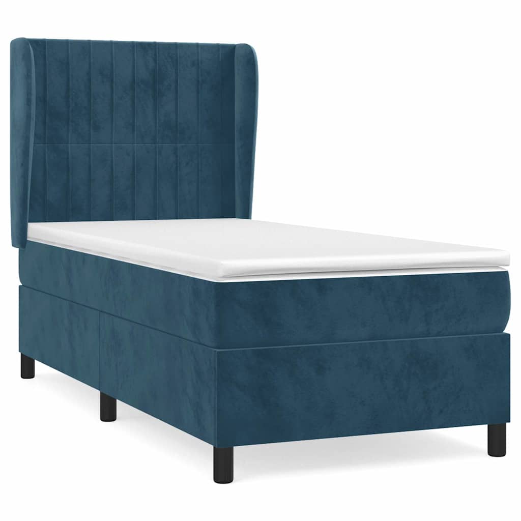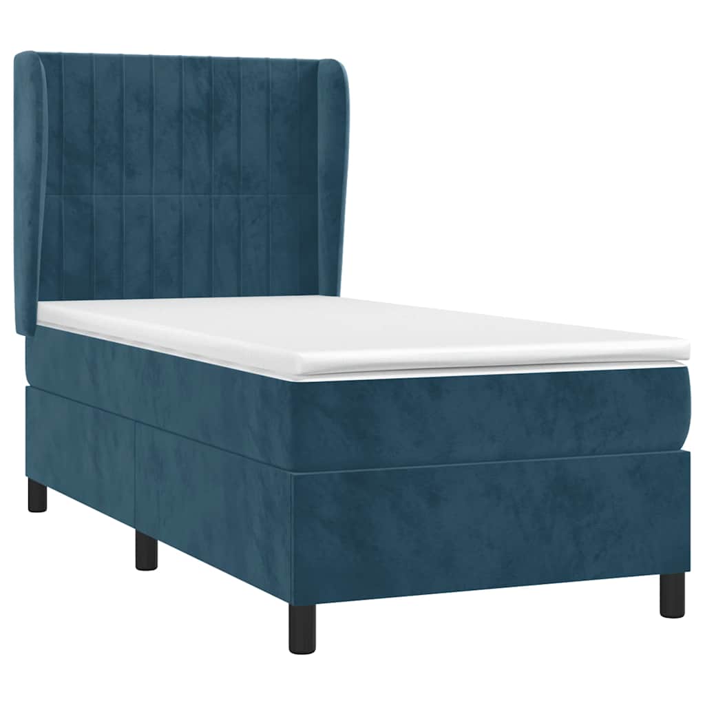 Pat box spring cu saltea, albastru închis, 100x200 cm, catifea GartenMobel Dekor