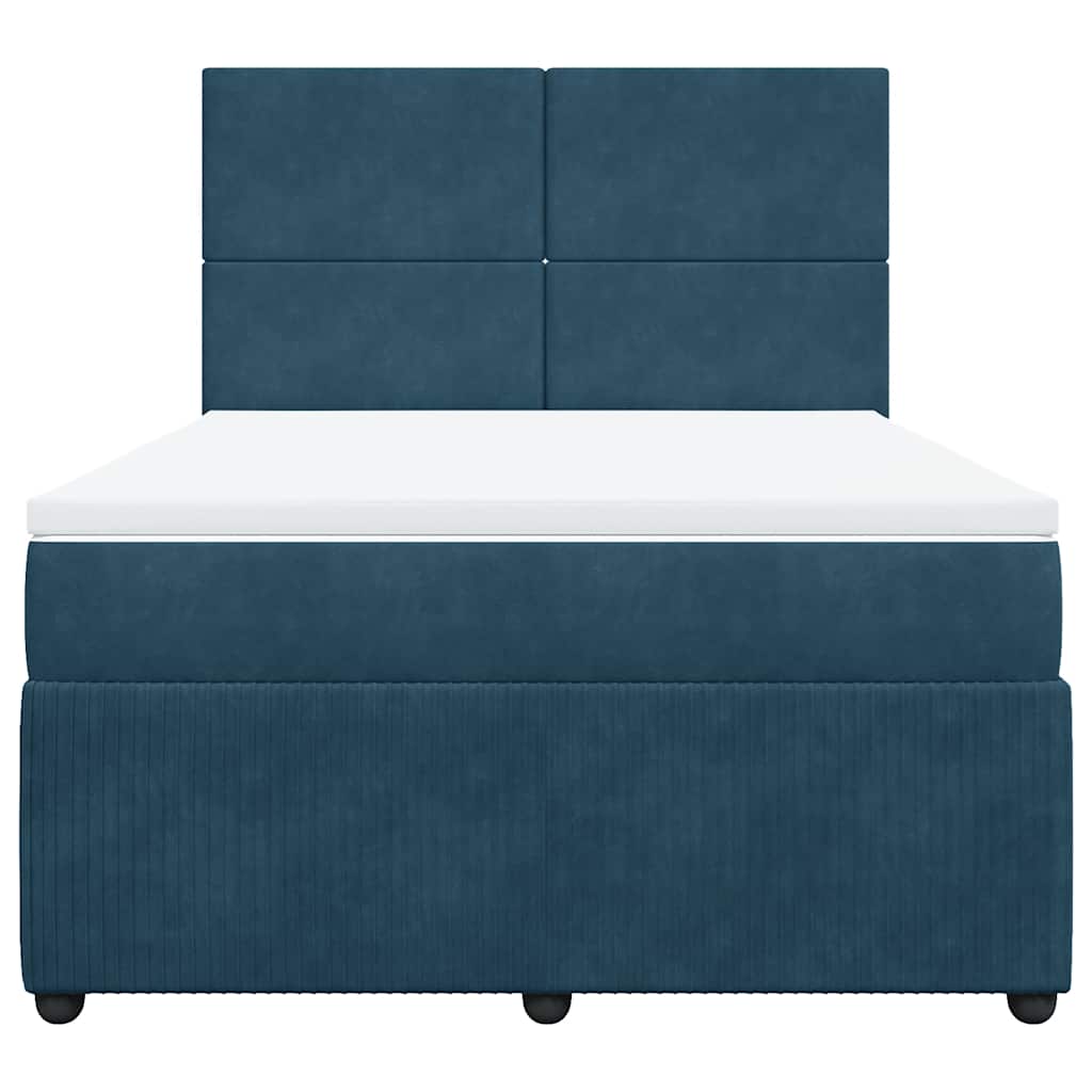 Pat box spring cu saltea, albastru închis, 140x200 cm, catifea GartenMobel Dekor
