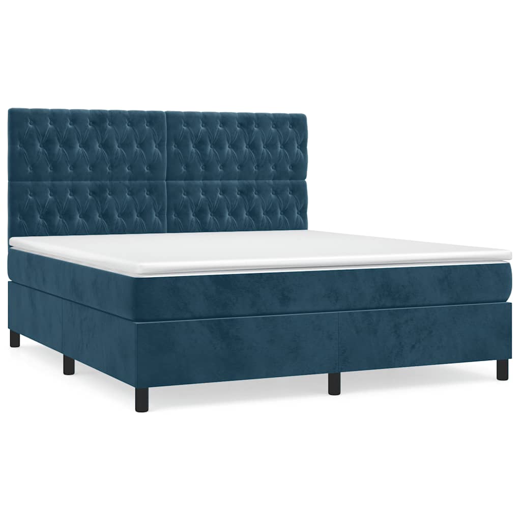 Pat box spring cu saltea, albastru închis, 180x200 cm, catifea GartenMobel Dekor