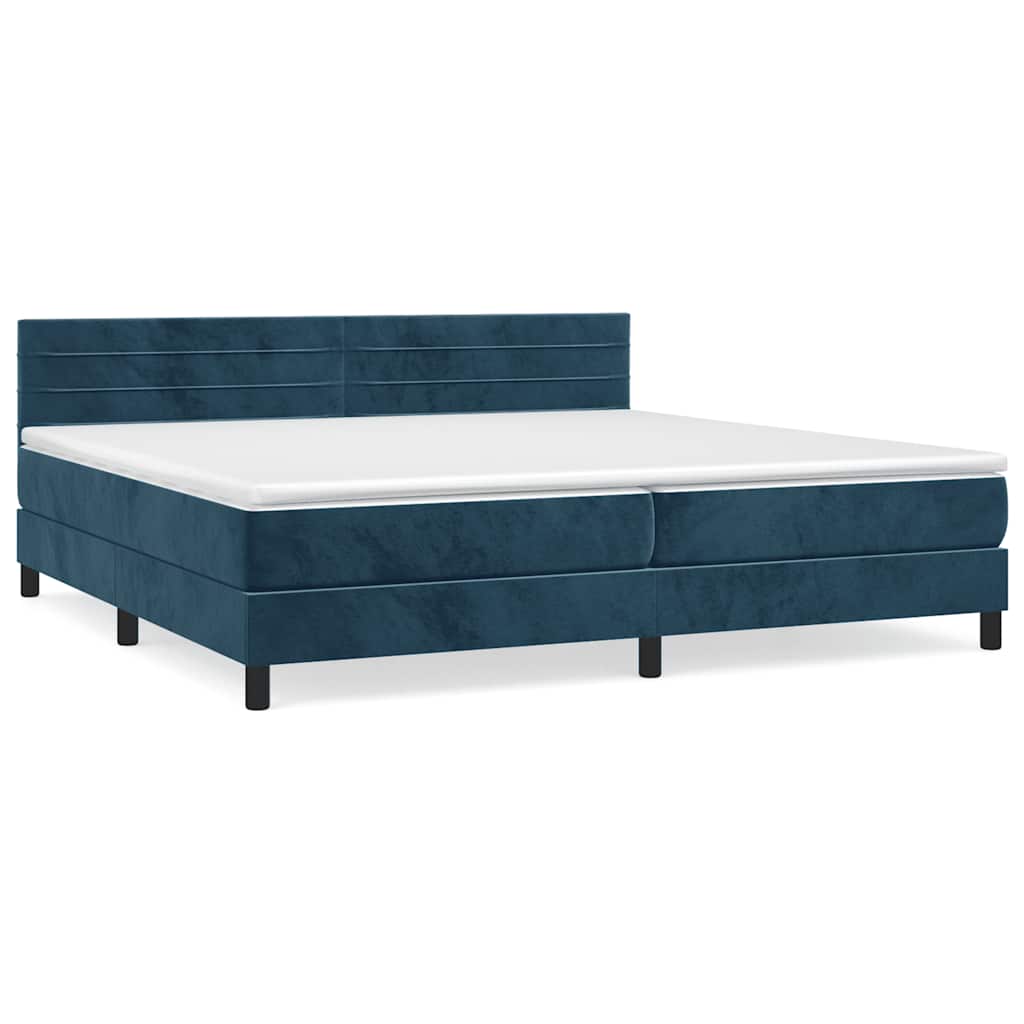 Pat box spring cu saltea, albastru închis, 200x200 cm, catifea GartenMobel Dekor