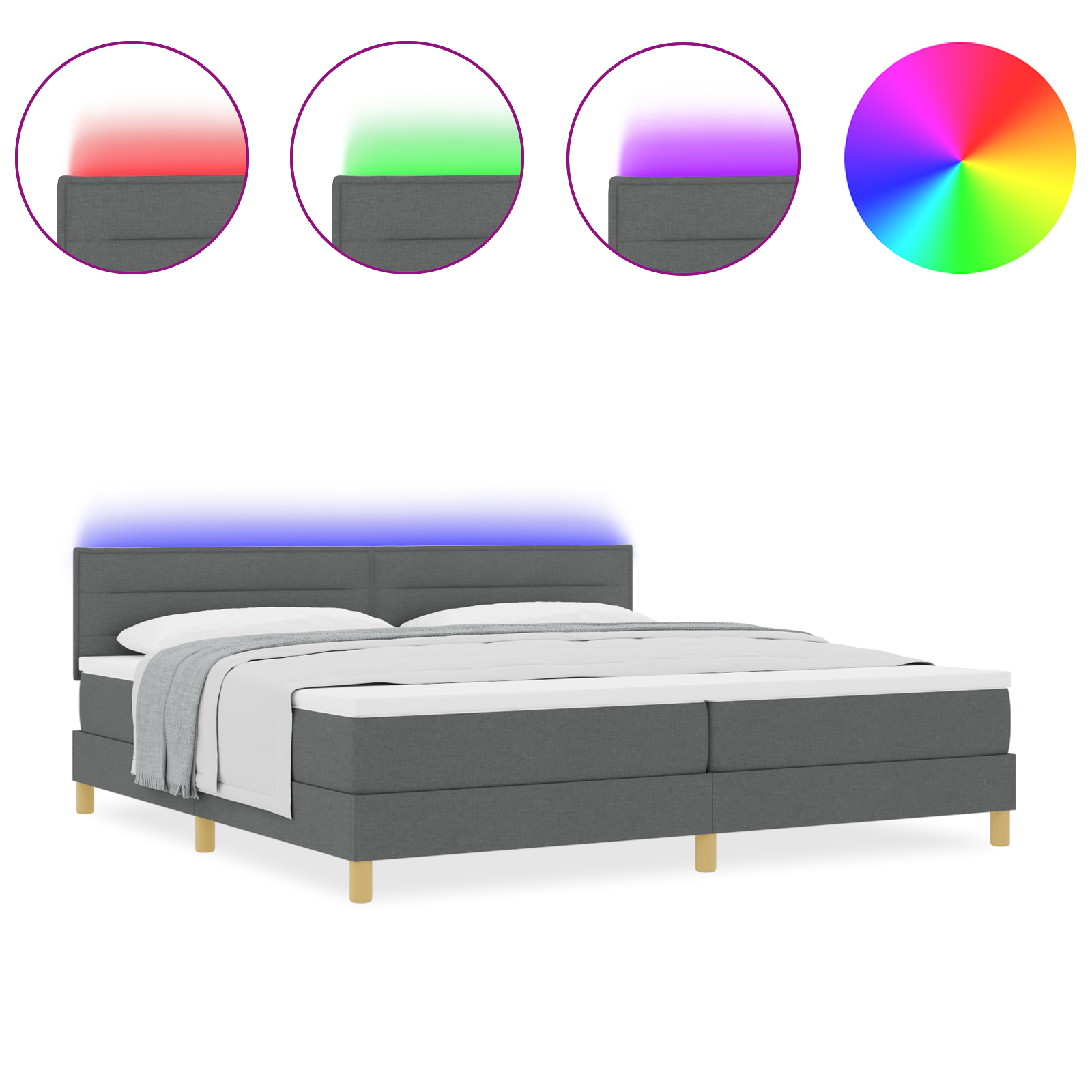 Pat box spring cu saltea & LED Gri închis 200x200 cm Țesătură GartenMobel Dekor