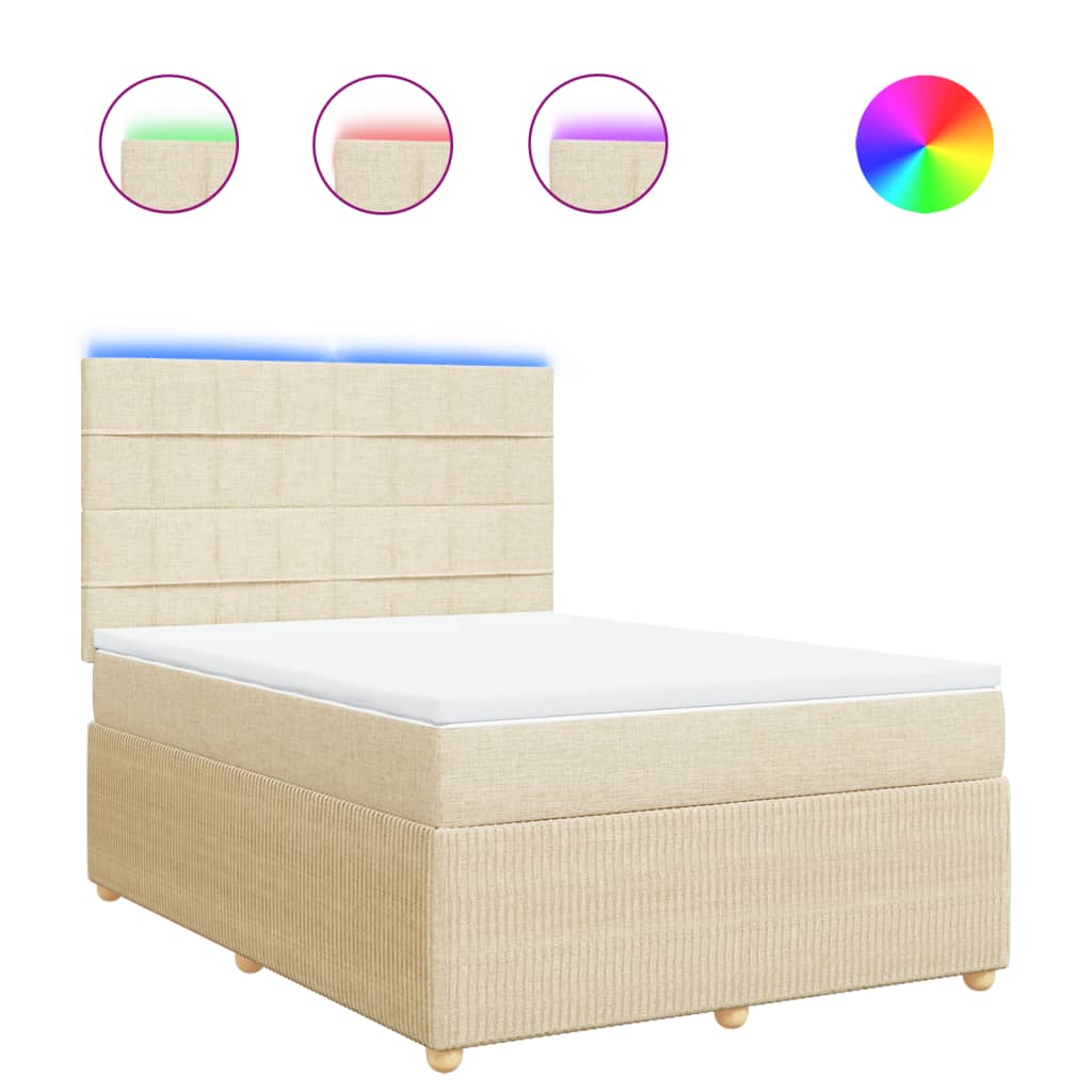 Pat box spring cu saltea, crem, 140x200 cm, textil GartenMobel Dekor