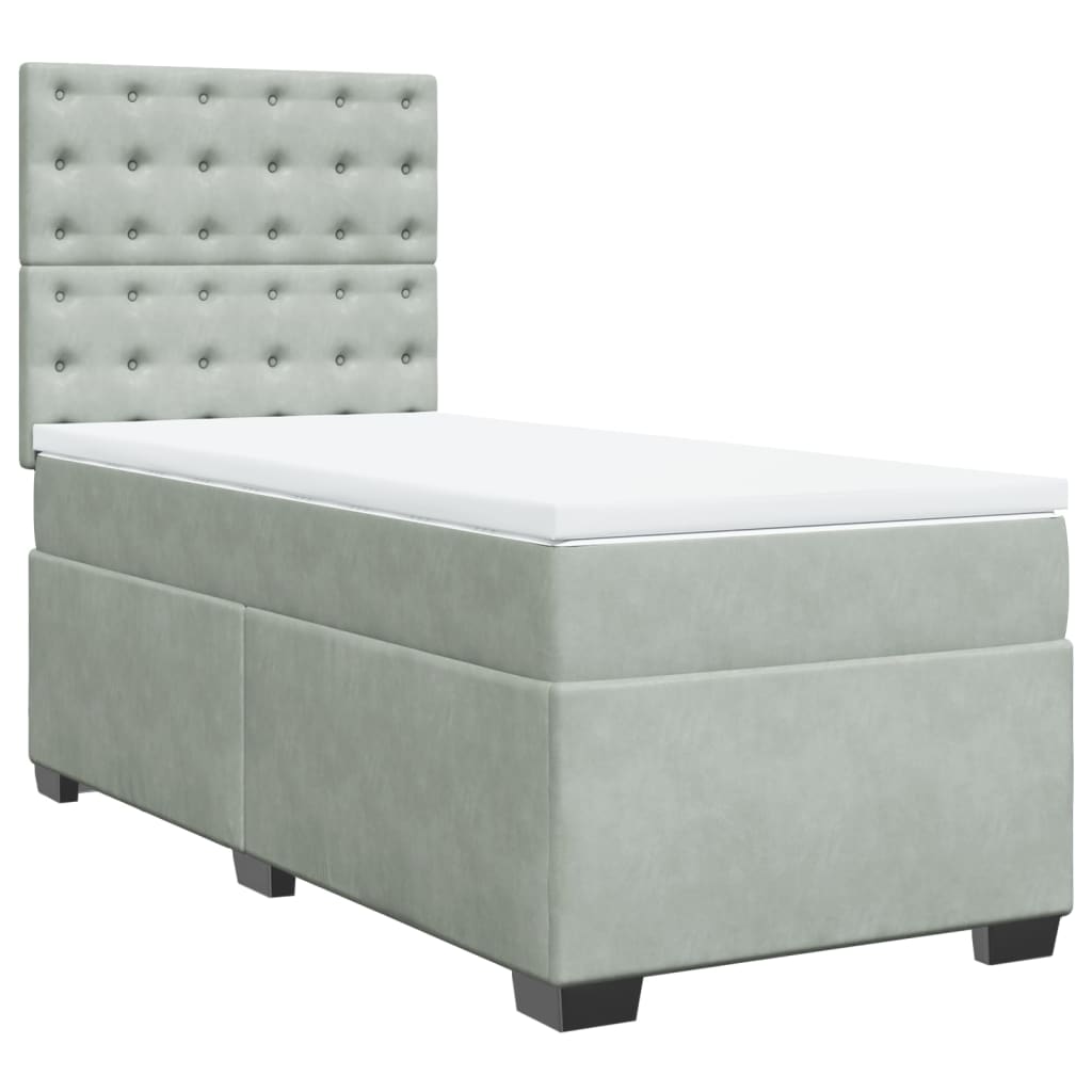 Pat box spring cu saltea, gri deschis, 100x200 cm, catifea GartenMobel Dekor