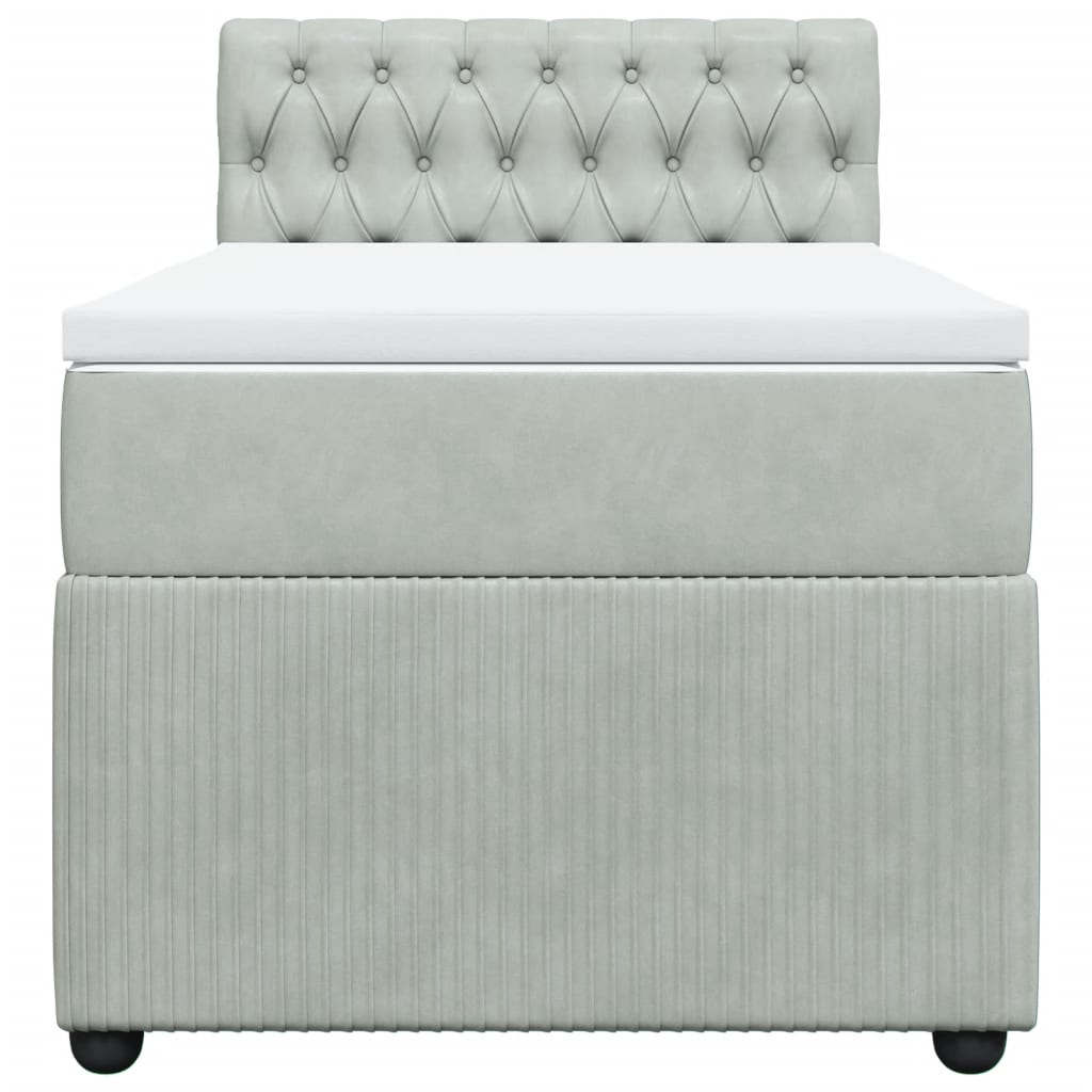 Pat box spring cu saltea, gri deschis, 100x200 cm, catifea GartenMobel Dekor