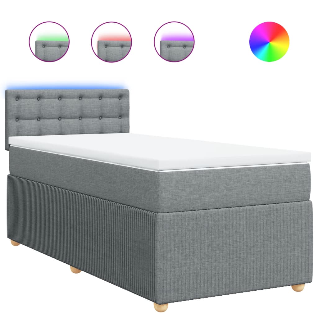 Pat box spring cu saltea, gri deschis, 100x200 cm, textil GartenMobel Dekor