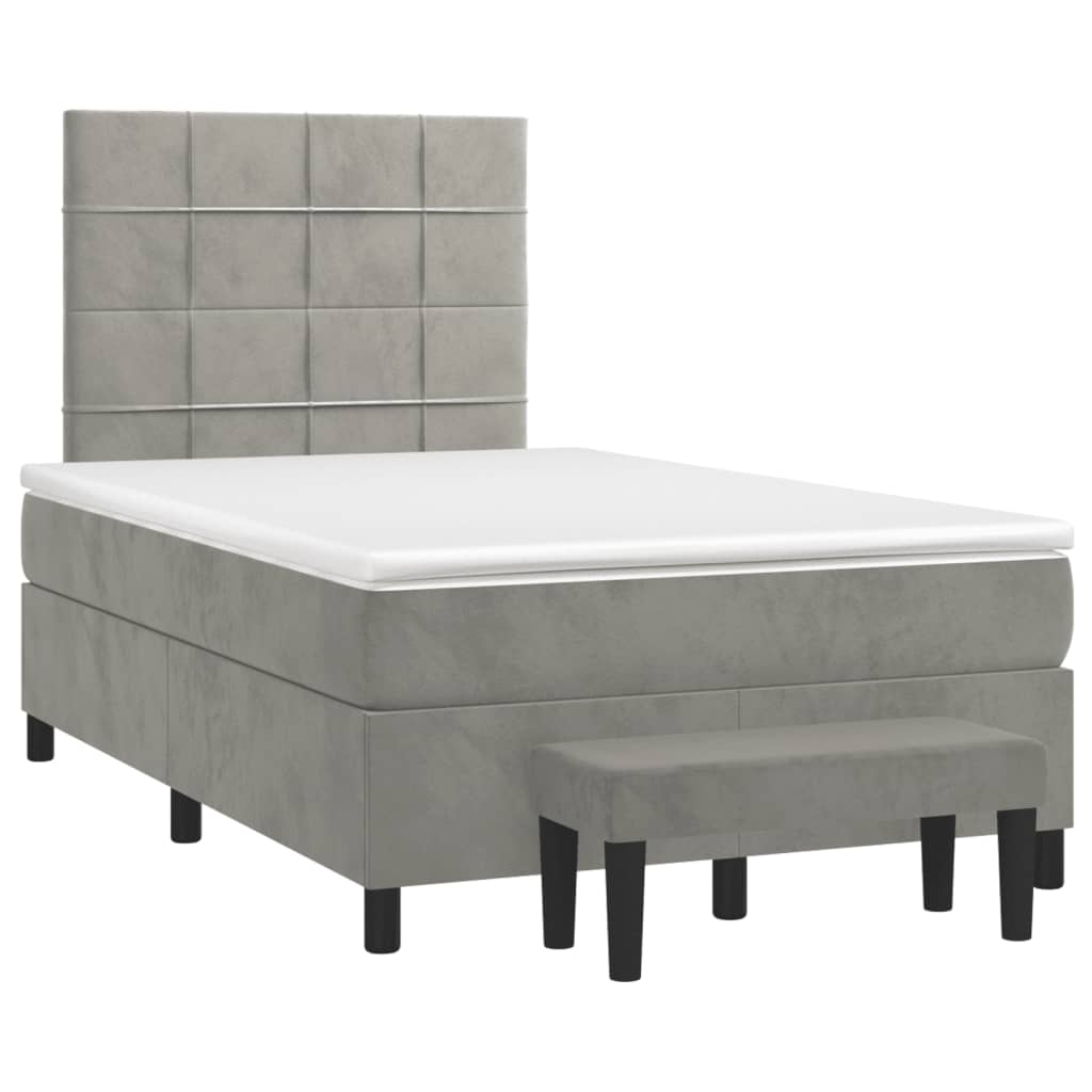 Pat box spring cu saltea, gri deschis, 120x190 cm, catifea GartenMobel Dekor