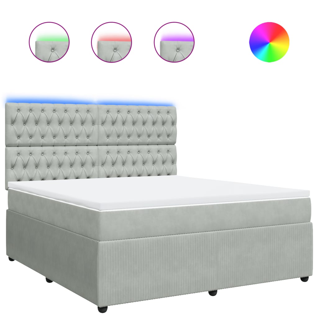 Pat box spring cu saltea, gri deschis, 180x200 cm, catifea GartenMobel Dekor