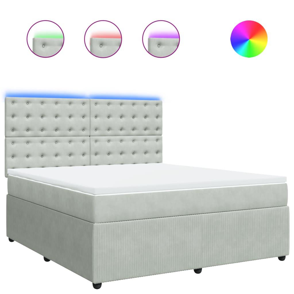 Pat box spring cu saltea, gri deschis, 180x200 cm, catifea GartenMobel Dekor