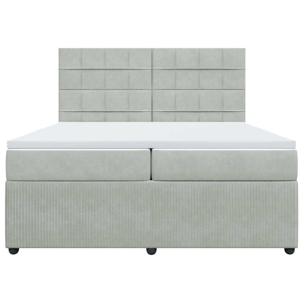 Pat box spring cu saltea, gri deschis, 200x200 cm, catifea GartenMobel Dekor