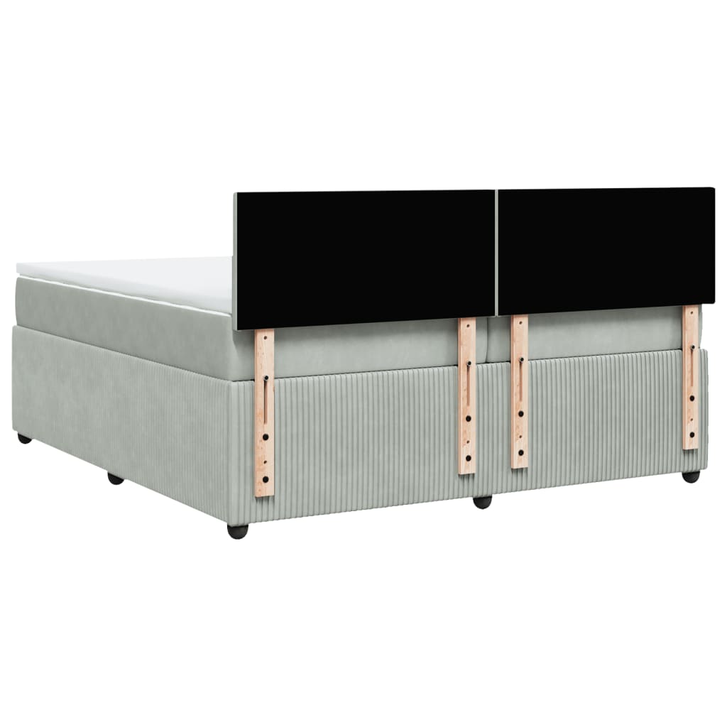 Pat box spring cu saltea, gri deschis, 200x200 cm, catifea GartenMobel Dekor