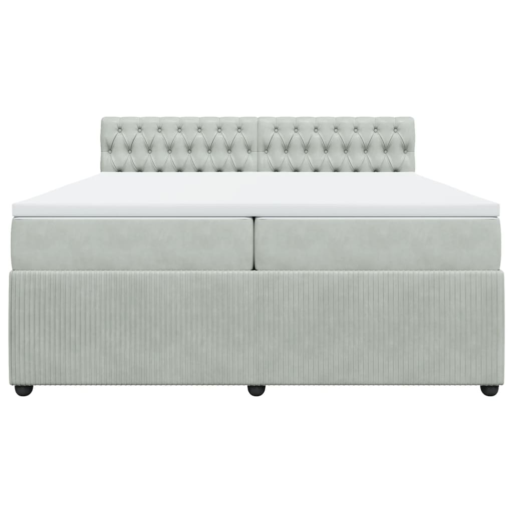Pat box spring cu saltea, gri deschis, 200x200 cm, catifea GartenMobel Dekor