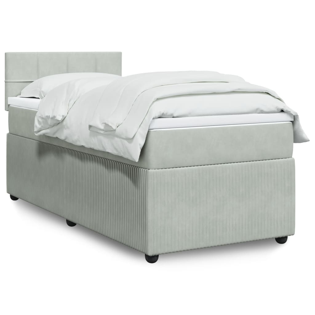 Pat box spring cu saltea, gri deschis, 90x190 cm, catifea GartenMobel Dekor