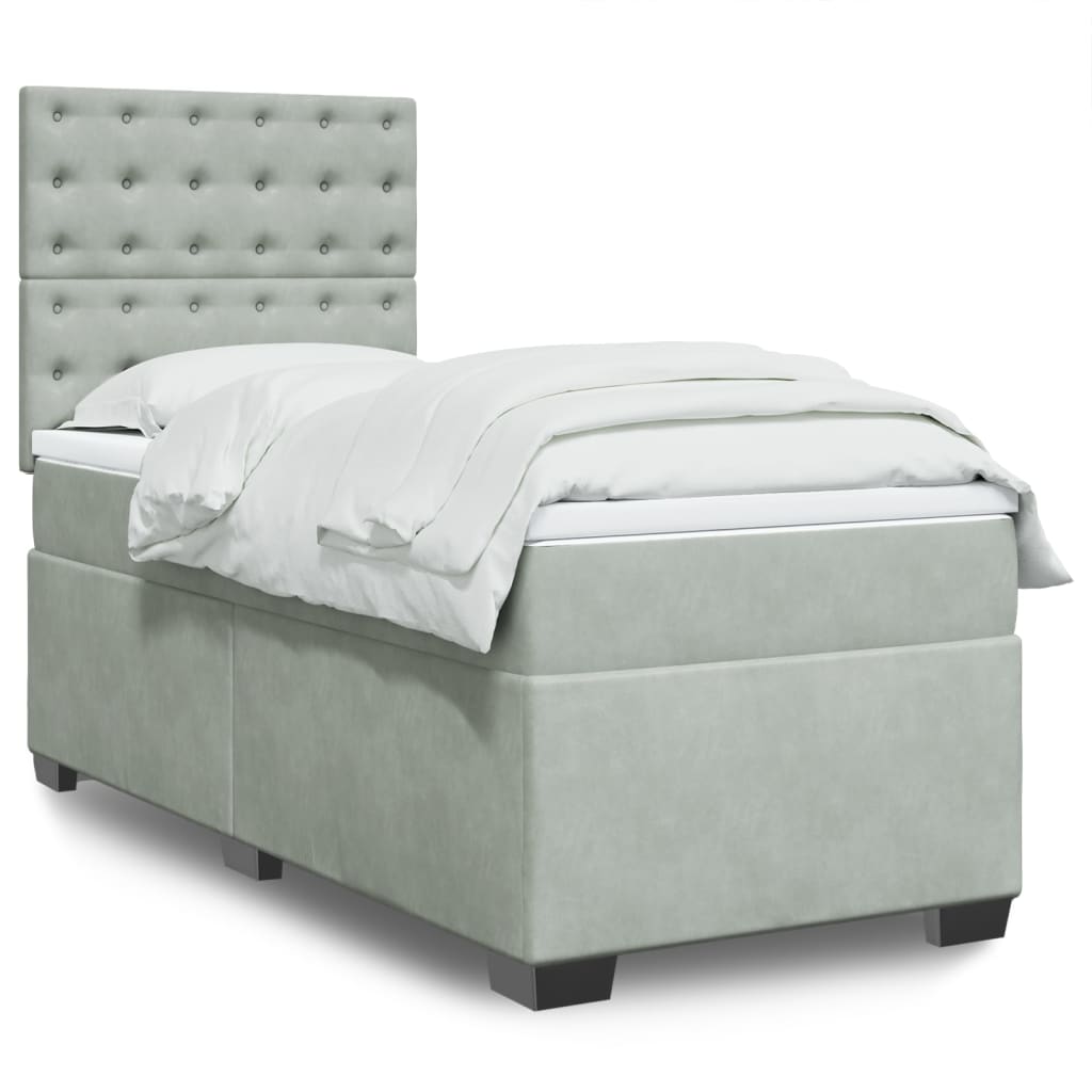 Pat box spring cu saltea, gri deschis, 90x200 cm, catifea GartenMobel Dekor