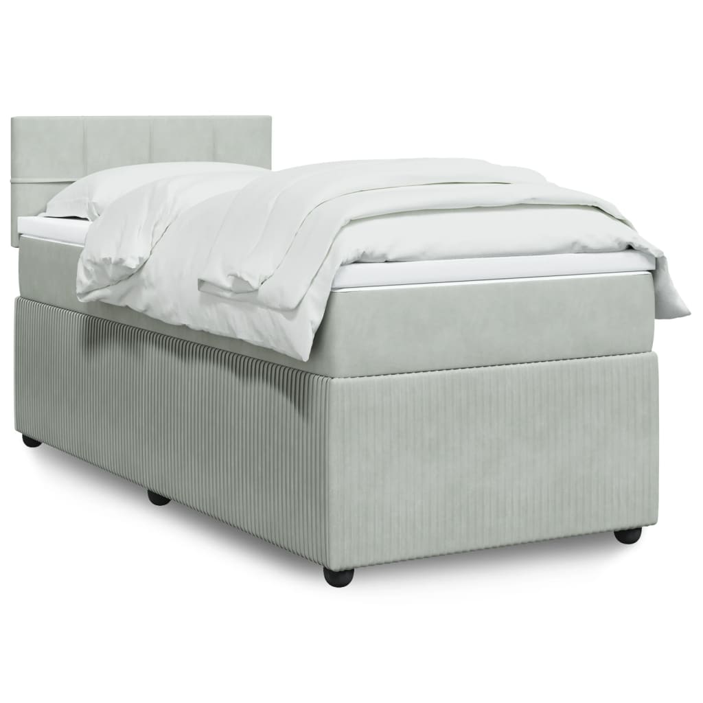 Pat box spring cu saltea, gri deschis, 90x200 cm, catifea GartenMobel Dekor