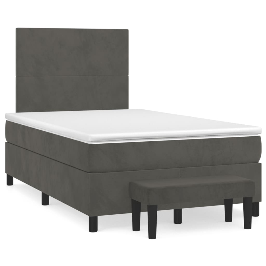 Pat box spring cu saltea, gri închis, 120x190 cm, catifea GartenMobel Dekor