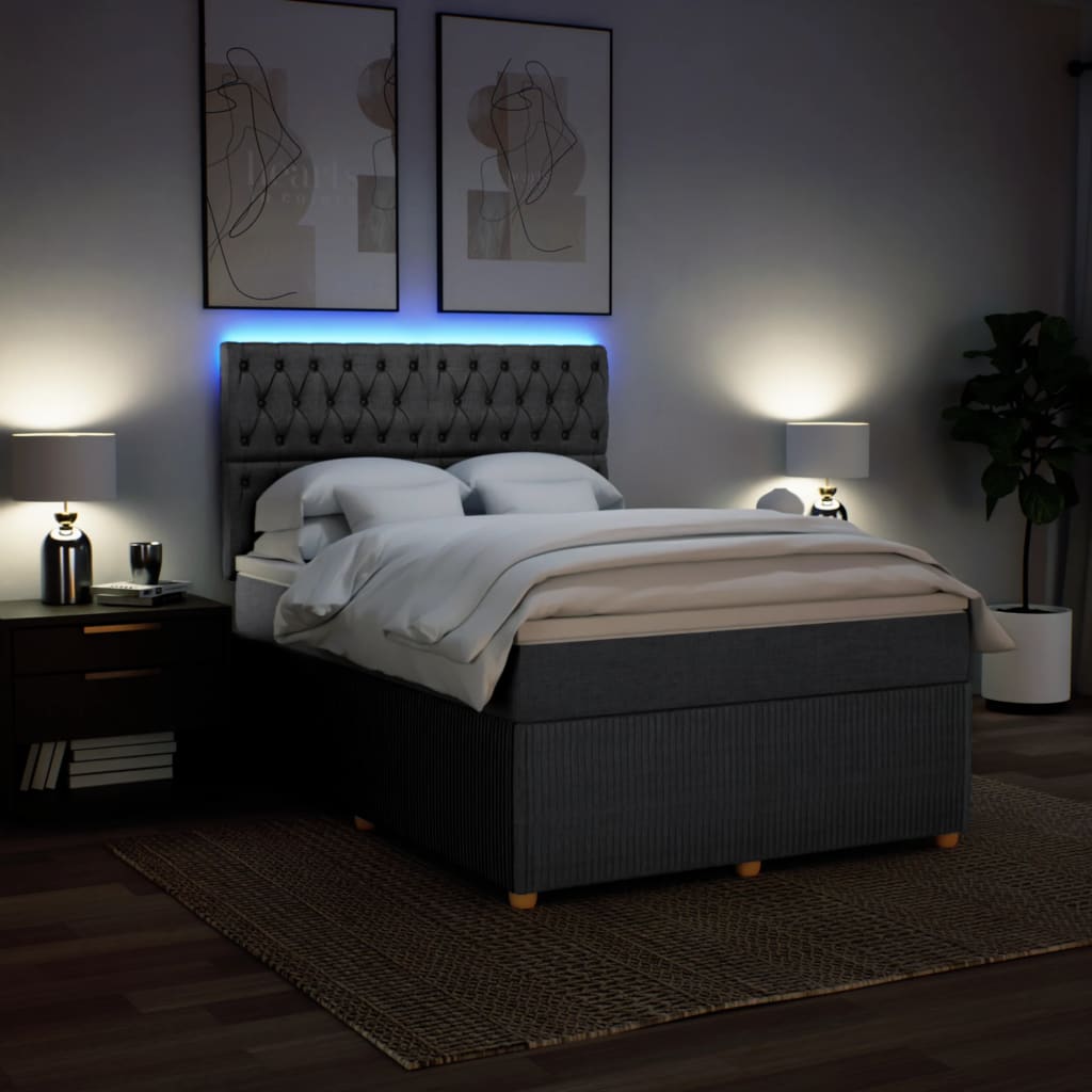 Pat box spring cu saltea, gri închis, 140x190 cm, textil GartenMobel Dekor