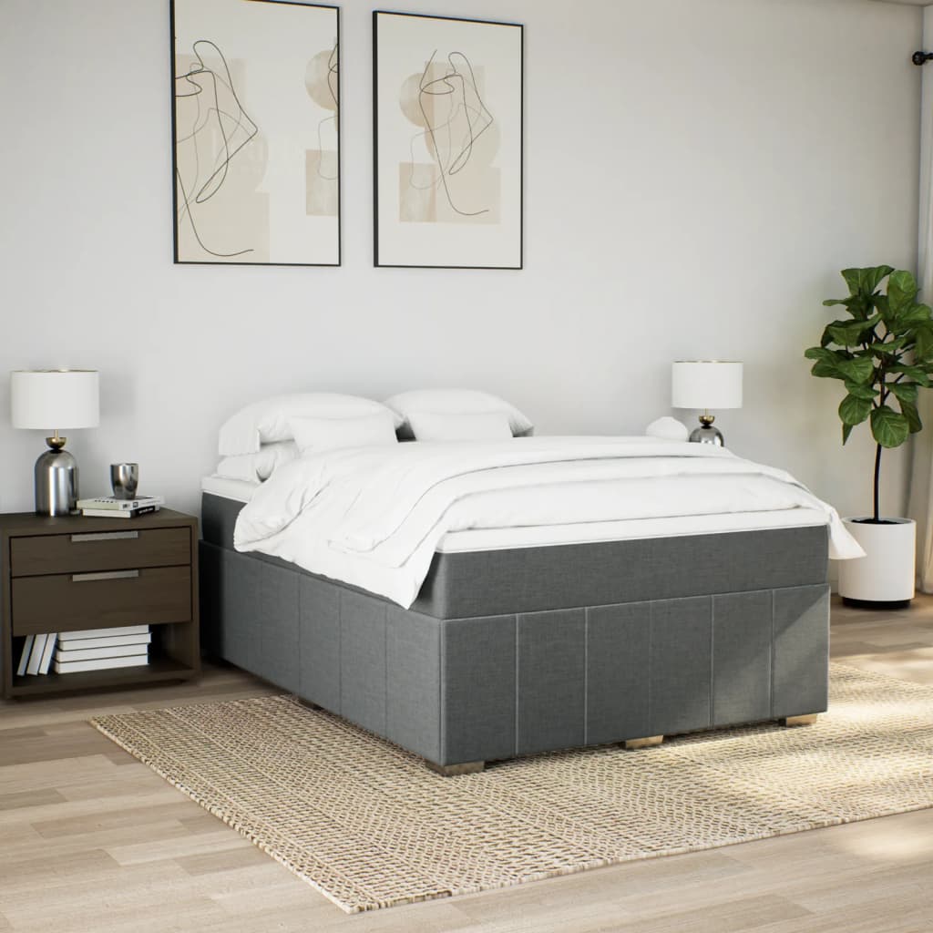 Pat box spring cu saltea, gri închis, 140x190 cm, textil GartenMobel Dekor
