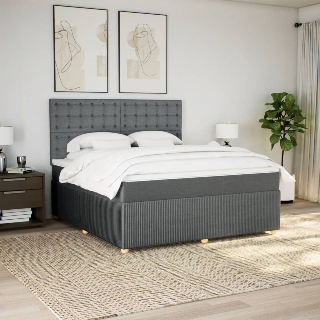 Pat box spring cu saltea, gri închis, 180x200 cm, textil GartenMobel Dekor
