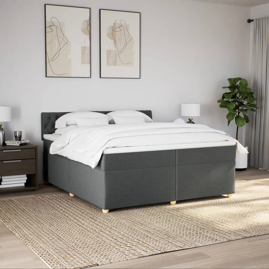 Pat box spring cu saltea, gri închis, 200x200 cm, textil GartenMobel Dekor