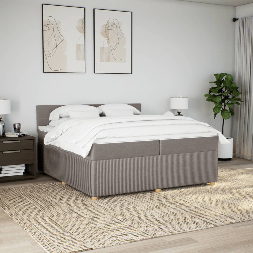 Pat box spring cu saltea, gri taupe, 200x200 cm, textil GartenMobel Dekor