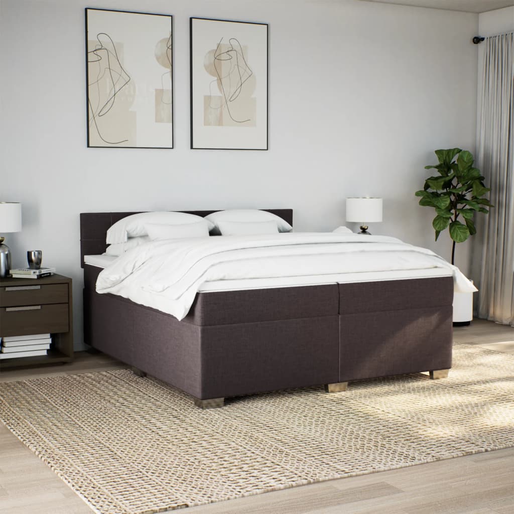 Pat box spring cu saltea, maro închis, 200x200 cm, textil GartenMobel Dekor