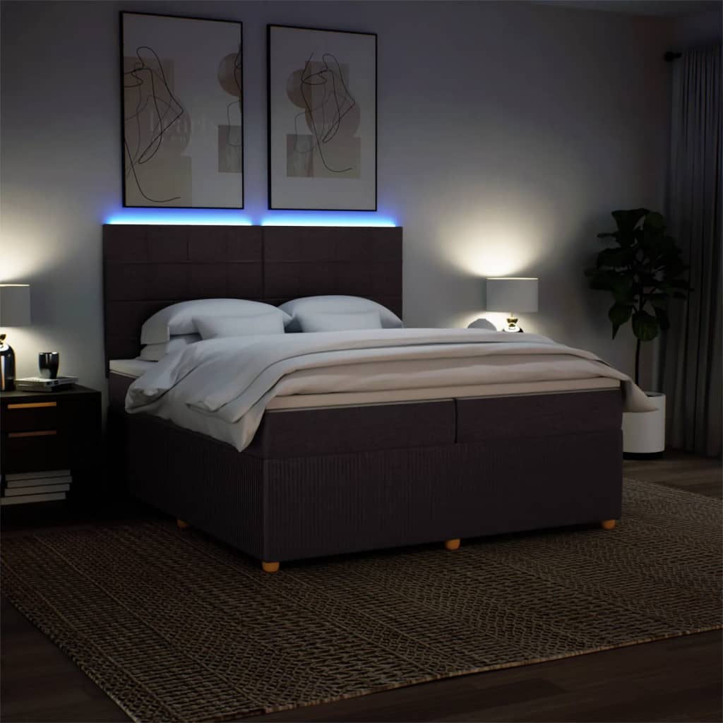 Pat box spring cu saltea, maro închis, 200x200 cm, textil GartenMobel Dekor
