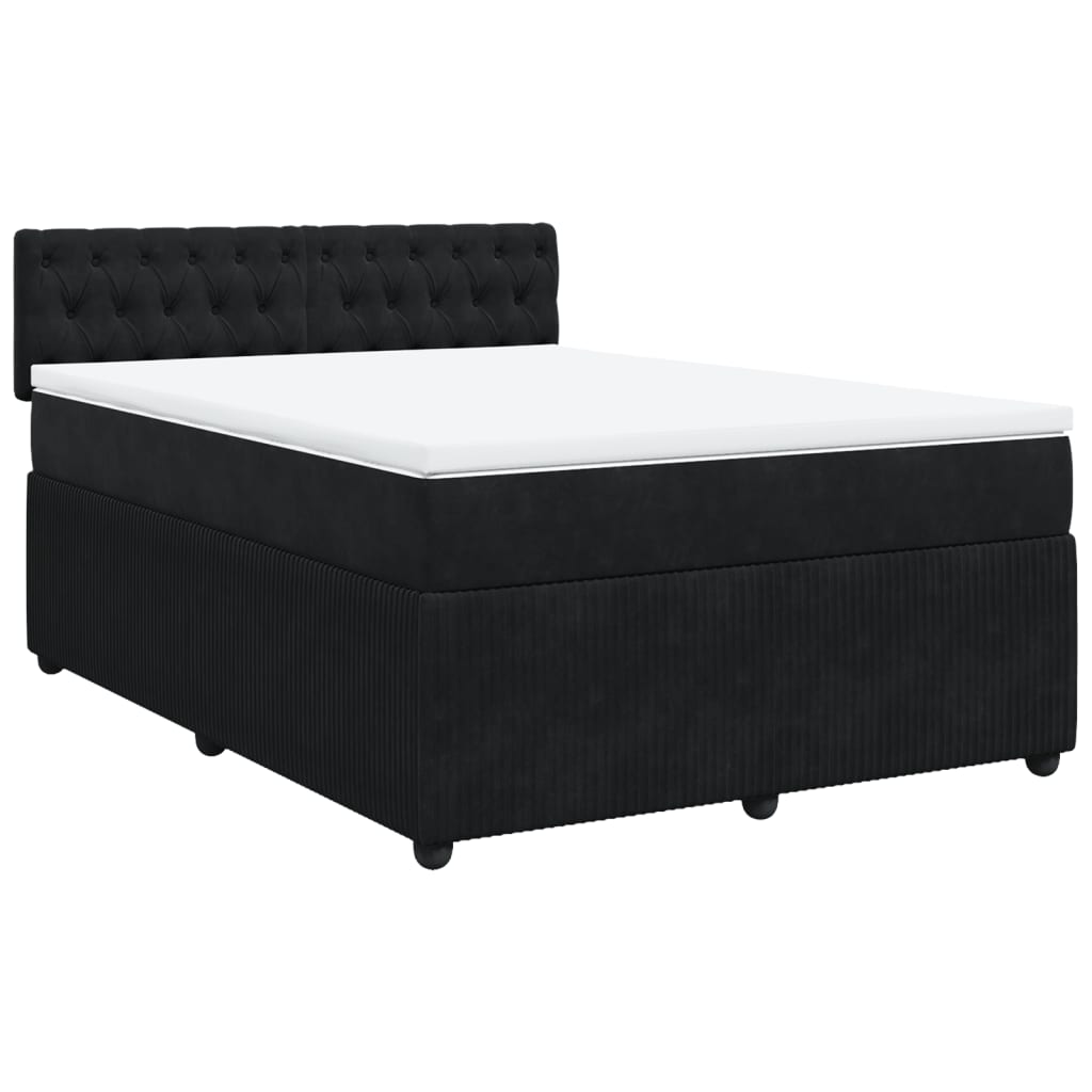 Pat box spring cu saltea, negru, 160x200 cm, catifea GartenMobel Dekor