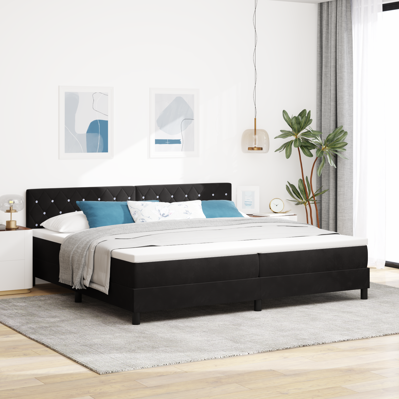 Pat box spring cu saltea, negru, 200x200 cm, catifea GartenMobel Dekor