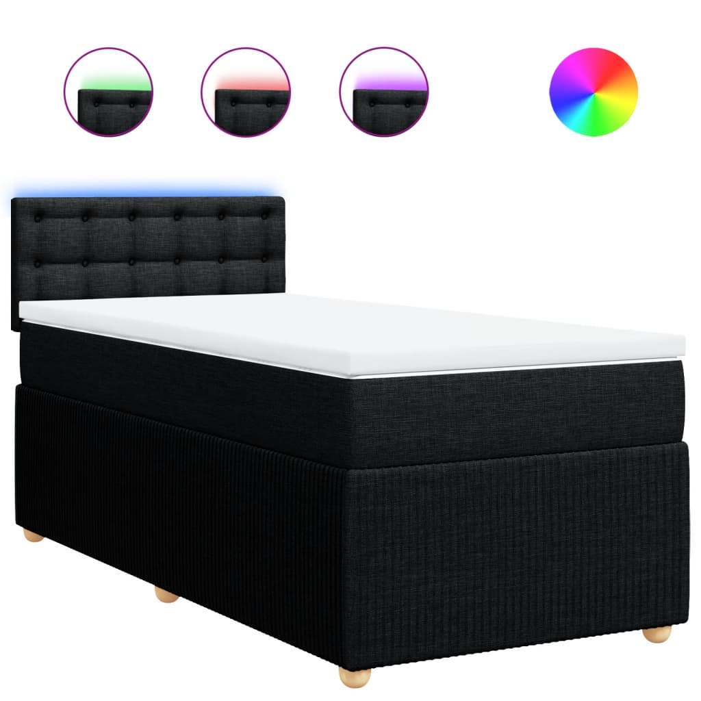Pat box spring cu saltea, negru, 90x190 cm, textil GartenMobel Dekor