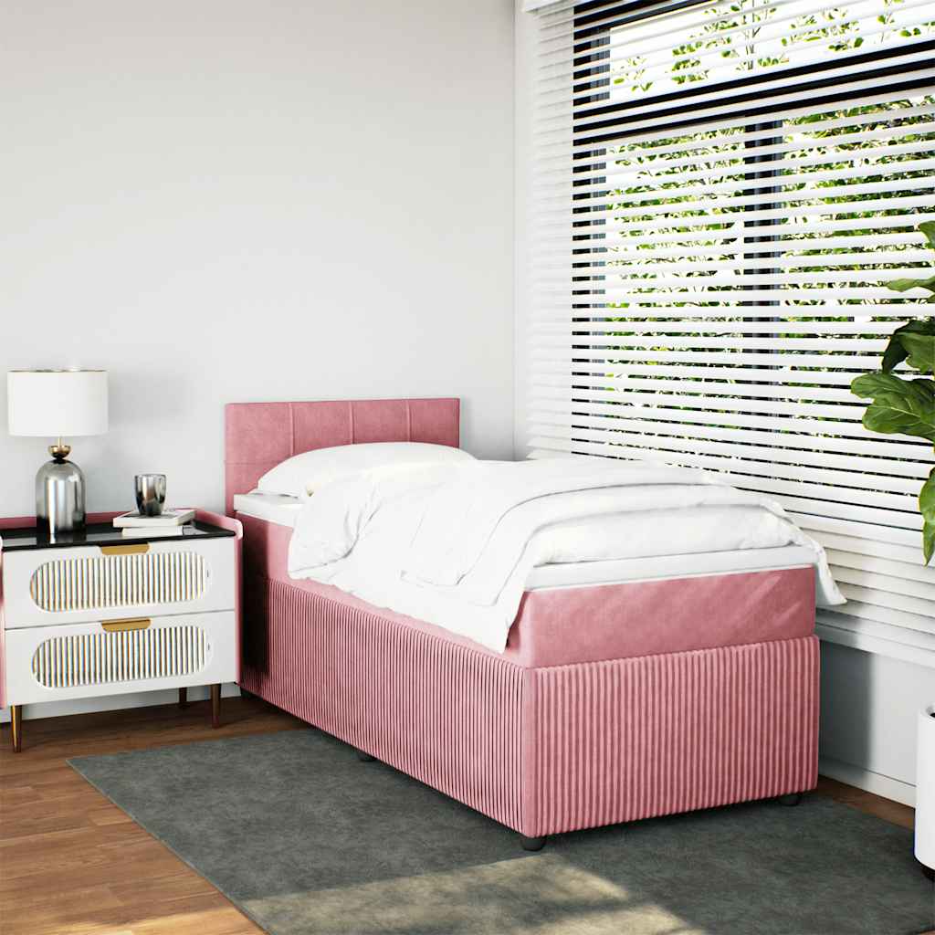 Pat box spring cu saltea, roz, 90x200 cm, catifea GartenMobel Dekor