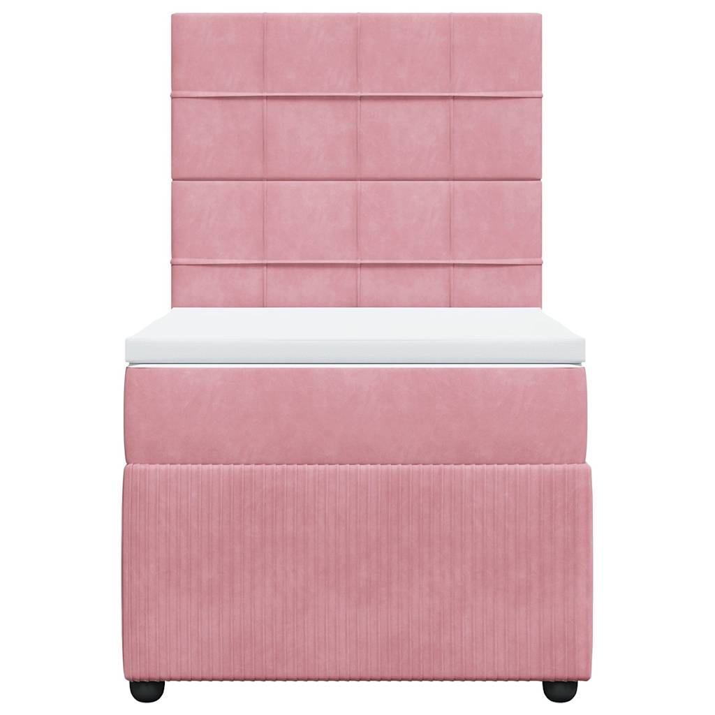 Pat box spring cu saltea, roz, 90x200 cm, catifea GartenMobel Dekor