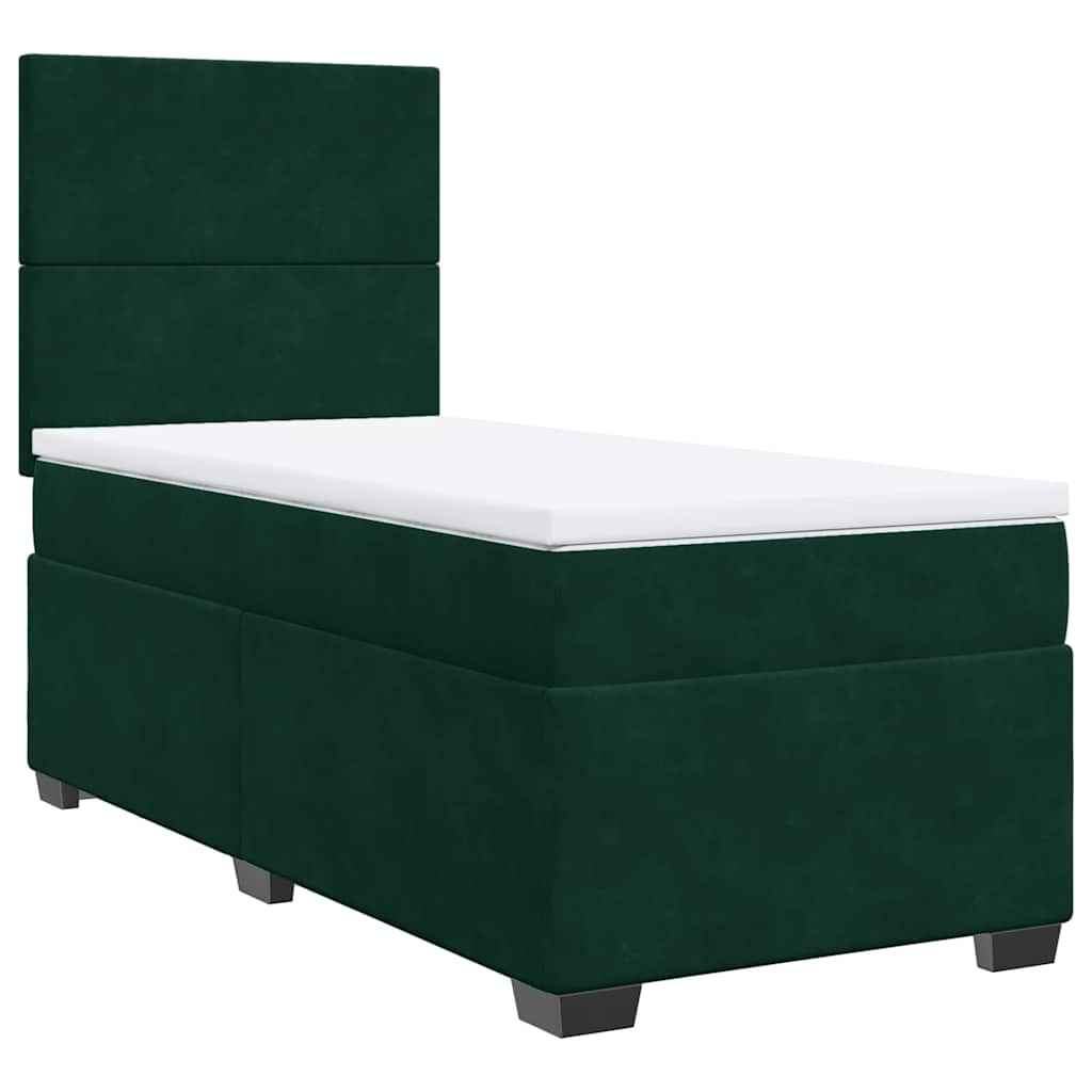 Pat box spring cu saltea, verde închis, 100x200 cm, catifea GartenMobel Dekor