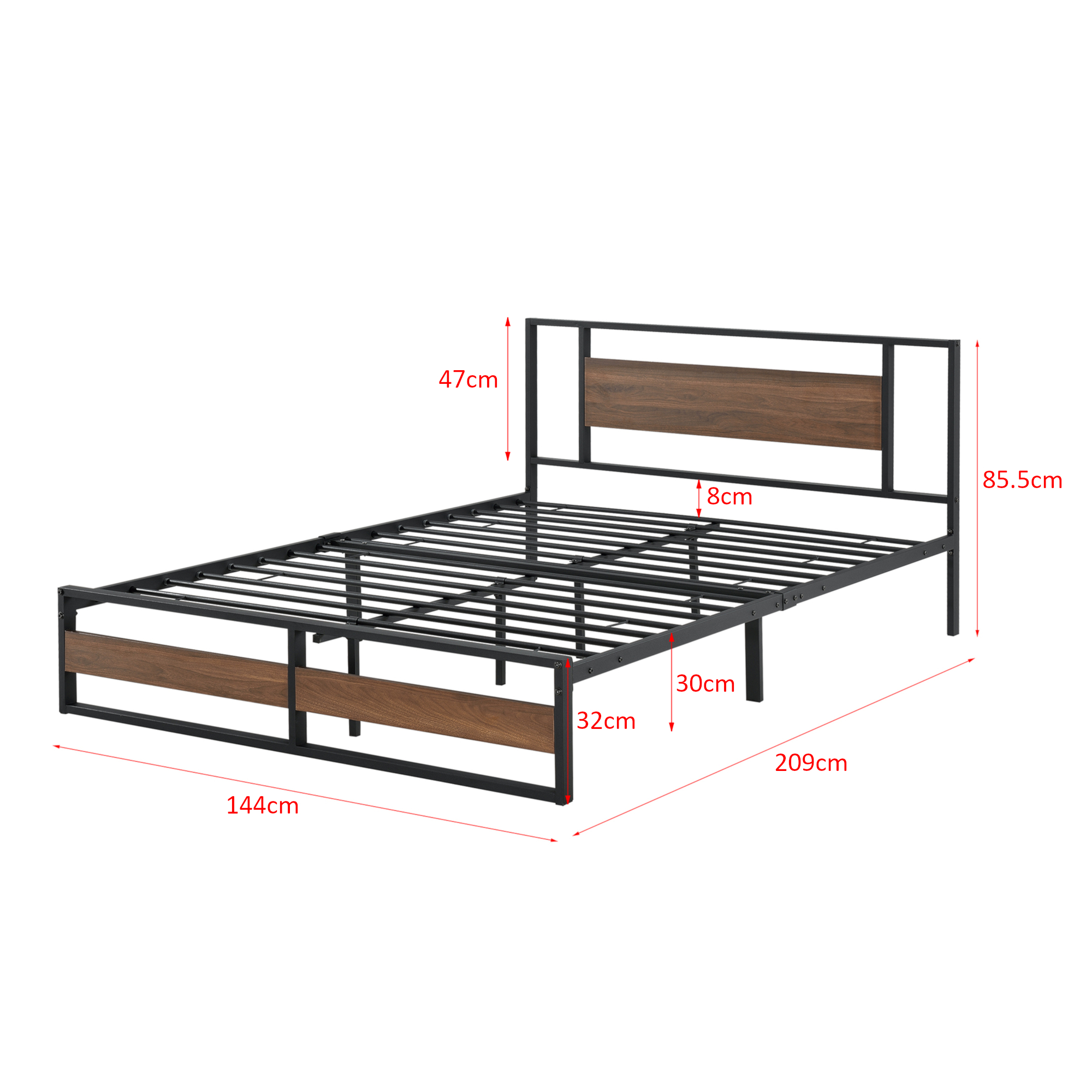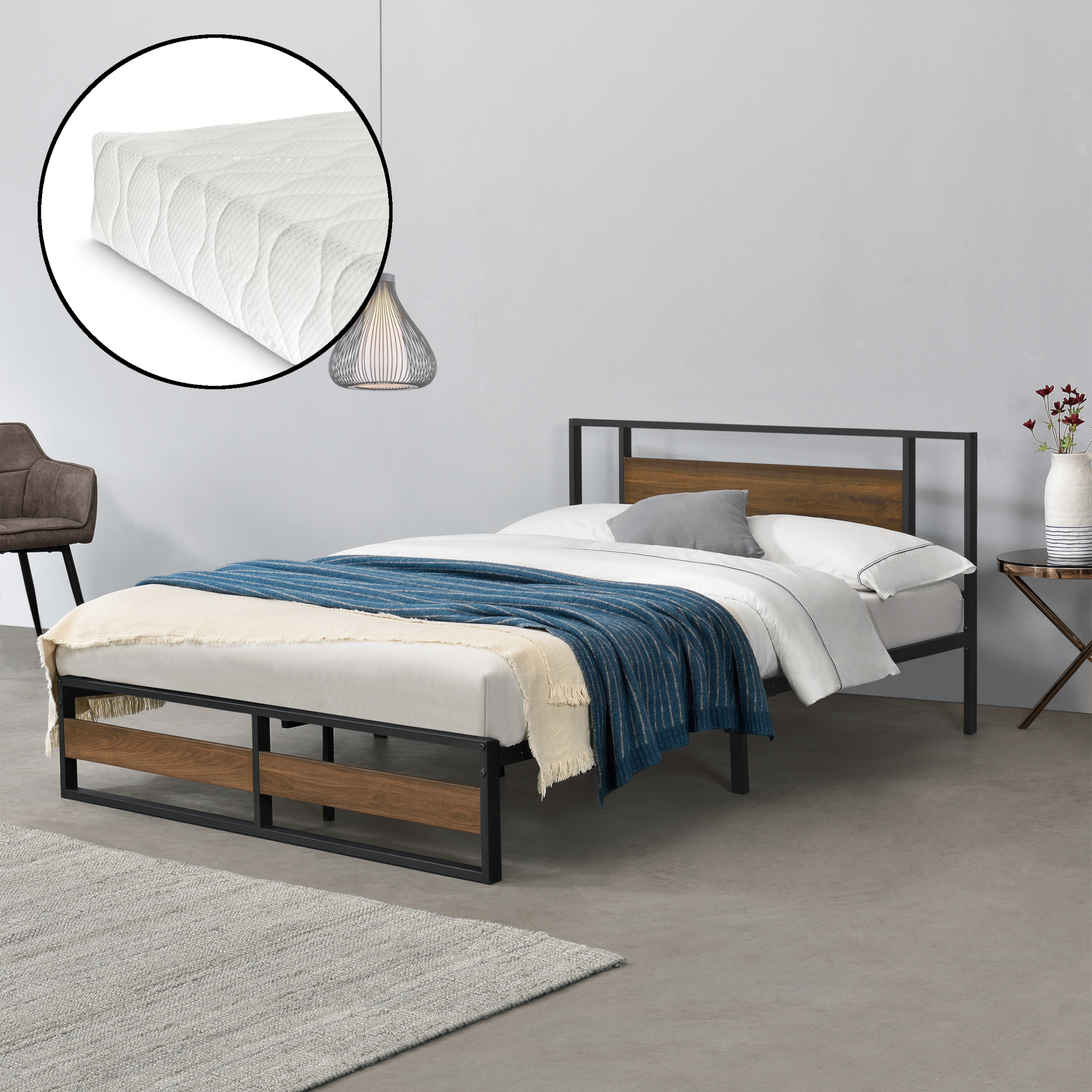 Pat cadru metalic Villach cu saltea 200 x 140 cm negru/efect lemn de nuc [en.casa] HausGarden Leisure